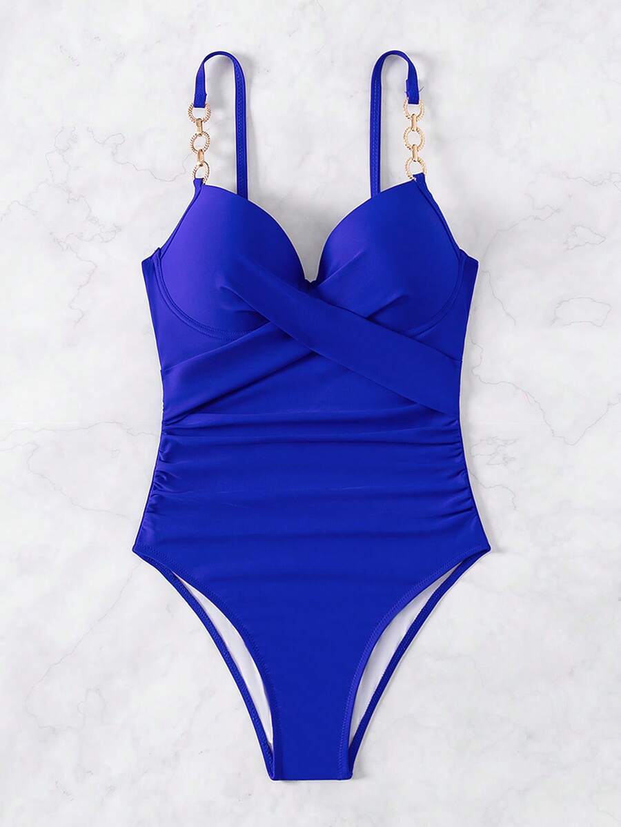 レディース 水着 ワンピース レディース ブルー スパゲッティストラップ ワンピース水着