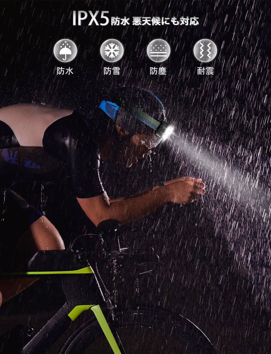 防水性能と12種類のモード:ヘッドランプはIPX5の防水性能を備えています。 高品質なケーシングは、より密閉されており、漏れを防ぐよう設計されています。 雨や雪の日でも屋内や屋外に適しています。LEDヘッドランプは12種類のライトモードを備えており、様々なニーズに対応します。