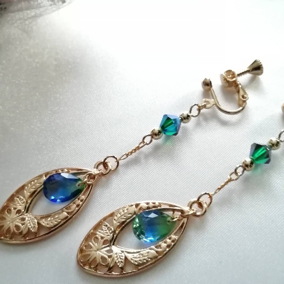 | ★商品内容★ ペンダントマーキスとブルーグラデーション雫のハンドメイドイヤリング★スワロフスキー/上品/ロング/ゴールド/エメラルド/雫/ゴージャス ペンダントマーキスの透かしに吊る下げた ガラスドロップの煌きがとても美しいイヤリングです。*・.**.・。**.・。*・**。・ ゴールドパーツと組み合わせた 上品でゴージャスな印象のひと品です*・.**.・。**.・。*・**。・ 普段使いはもちろん、お出掛けにも ブライダルやお呼ばれなどのイベントにも最適です*・**.・。**.・。*・**。・. 【素材】 ペンダントマーキス透かしゴールド28mmx15mm スワロフスキー5328エメラルドオーロラ6mm ガラス雫クリソライトグリーンxブルーグラデーション7mmx10mm ユリアパール金メッキ3mm k16GPチェーン カンより垂れ下がる長さは、約6.2㎝です。 E-1166 ★注意事項★ ***~ ご購入前に必ずお読み下さい ~*** *・*・* 落札後について *・*・* *落札後4日以内にお手続き、ご連絡が無い場合は落札者都合で削除致します。 *発送日指定・ご入金の予定が1週間以上先をお考えの方は、入札の前に質問よりご連絡くださいませ。 ◆予めご了承の上、ノークレーム・ノーリターンでお願い致します。 *・*・* 商品について *・*・* *一点一点心を込めて作っておりますが、手作りなため多少の歪み等あるかもしれません。 手作りの味わいと、世界で一つだけの作品とお考えいただければ幸いです。 *デリケートな商品ですので、強く引っ張ったりすると破損する事もあります。 お取り扱いにはご注意ください。 *ご覧のPC、スマホによっては画像と実物の色味が多少異なる場合があります。 **基本イヤリング金具は跳ね上げネジ付き金具にて作成しております。 ~ ご希望によりピアスへの変更も承っております ~ *フックピアス…無料 *キャッチピアス…別途追加料金120円】 *その他…樹脂ノンホールピアス(無料)・丸玉カン付き樹脂素材ノンホールピア(無料) にも変更をお受け致します。 ~ ご注文の際にメッセージ欄よりお申し付け下さい ~ 尚、金具変更のご希望が無い場合は、掲載された写真の金具にてお送り致します。 *金属アレルギーや化学物質アレルギーなどへの対応はしておりませんので、ご心配な方はご遠慮下さいますようお願い致します。 *永くご愛用頂くために、ご使用後は柔らかい布等で軽く拭いてください。 *・*・* プレゼント用梱包のご要望もお受けいたします *・*・* ◆ご希望の場合は、必ず商品のご注文前にメッセージ欄にてご連絡をお願いします。 *プレゼント用梱包の際は、梱包費用が別途で必要となりますのでご注意ください。 また、ご希望の梱包タイプによって、発送方法が変わりますので、送料が別途必要となります。 *プレゼント用梱包タイプ 【袋→100円】 発送方法【クリックポスト(送料無料】⇒【合計 185円の追加料金】 *プレゼント用梱包タイプ 【箱→200円】 発送方法【レターパックプラス(別途520円)】⇒【合計 720円の追加料金】 となります。 ◆ご希望の場合は、必ず商品ページをウォッチリストに登録した上で落札前に質問にてお問合せ下さい。◆ ◆ご希望を承り次第、一度出品を取り消し、プレゼント用梱包費用、送料などを追加した金額へ変更し、再出品致します。◆ ◆再出品後に再度検索して頂く手間が省けますため、プレゼント梱包をご希望の場合は必ずウォッチリストへのご登録をお願い致します。 ◆金額変更後の再出品から3日以内に落札されなかった場合、誠に勝手ながら購入する意思がないとみなしまして、元の金額へ修正致します。 ◆また、修正後、再度プレゼント用梱包のご希望のお問い合わせを頂きましても、お断りをさせていただきますのでご注意ください。 *~ご不明な点がございましたら、落札前に質問よりお願い致します~* *** ご質問について *** *落札前に質問よりお願い致します。 *日中は仕事をしておりますので、ご返事が直ぐに出来ない場合がございます。 出来る限り早い対応を心がけますが、ご了承ください。 *発送までには、お振込み確認後、翌日の発送を心がけておりますが、仕事の都合により2~3日程かかる場合がございます。(その際にはナビにてご連絡いたします) *お急ぎの場合は、極力対応いたしますが、場合によっては対応致しかねる事もあります。ご了承下さいませ。 | |||