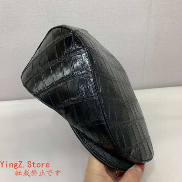 クロコダイル 本革 ワニレザー 日よけ メッシュ 通気性 サイズ調節 メンズ キャスケット ハンチング帽 フリーサイズ 帽子 1点物