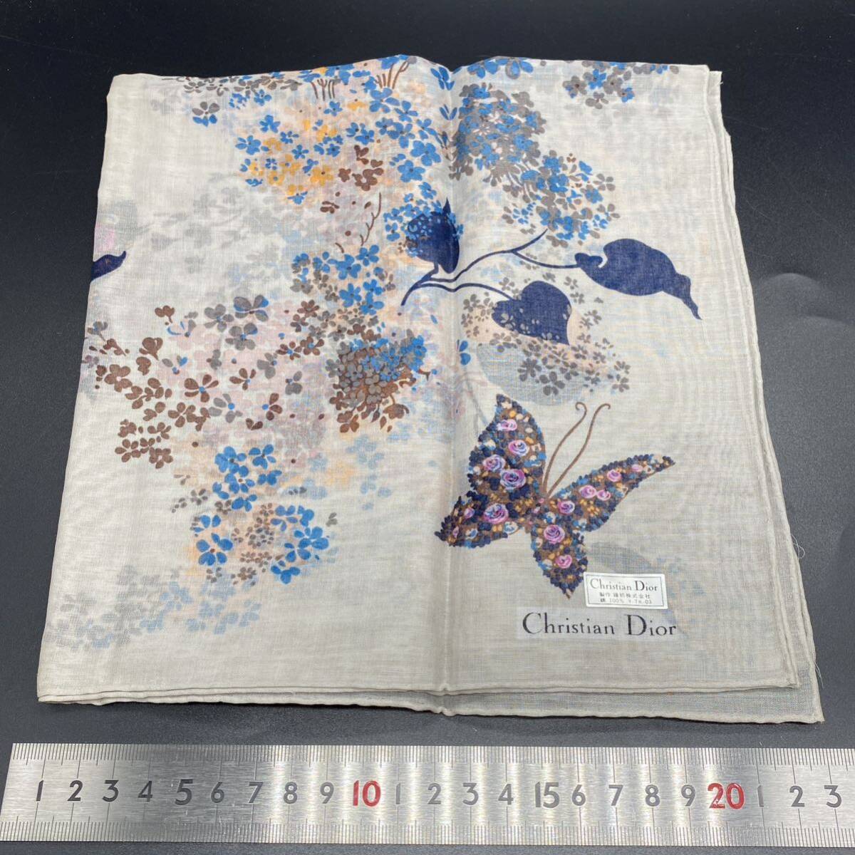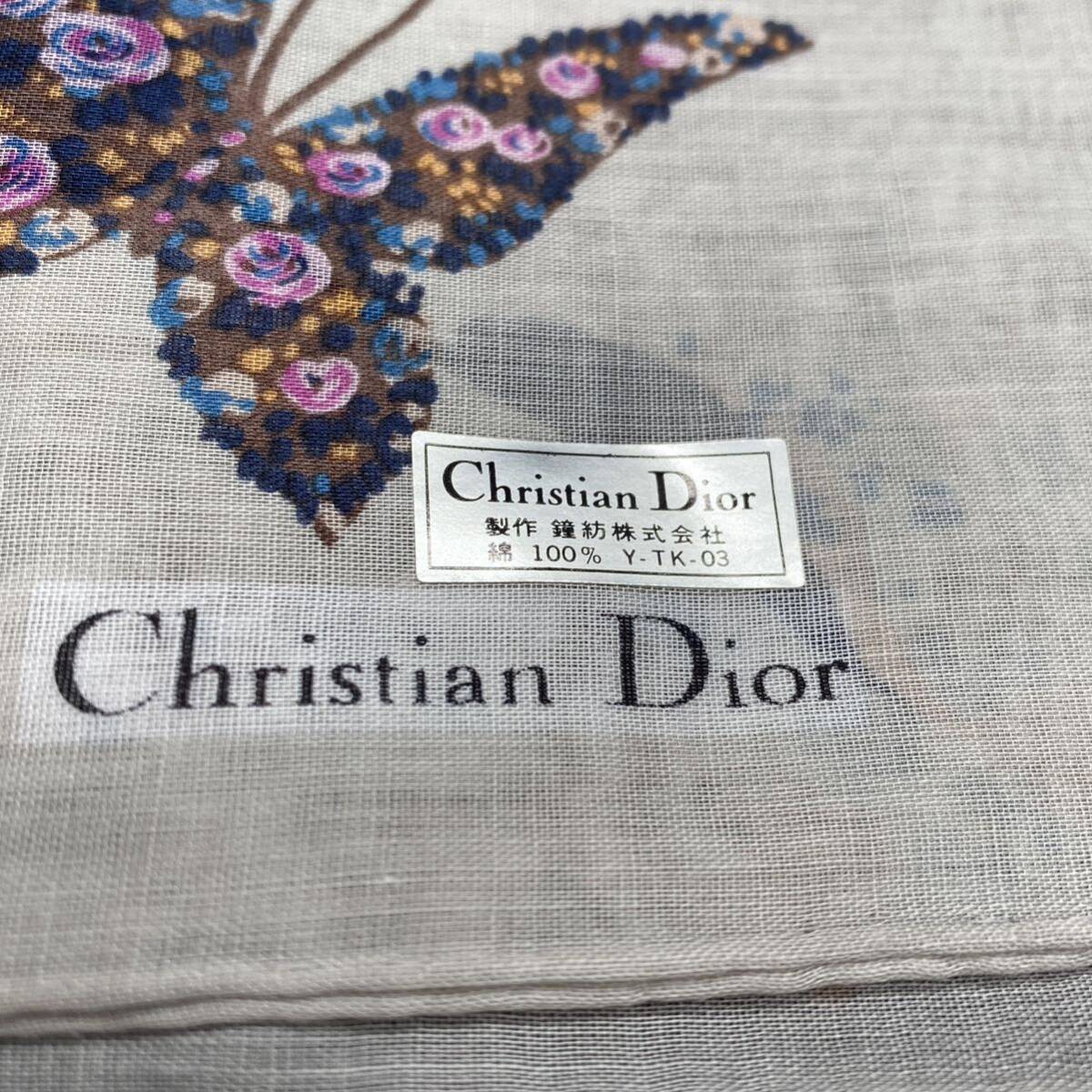 Christian Dior クリスチャンディオール ハンカチ グレー ボタニカル 蝶 ちょう no.39