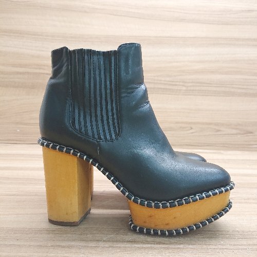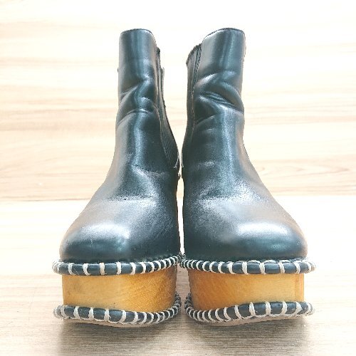 ■ MOUSSY マウジー ウッドソール アイコニック サイドゴア ショート丈 ブ-ツ サイズM ブラック レディース E