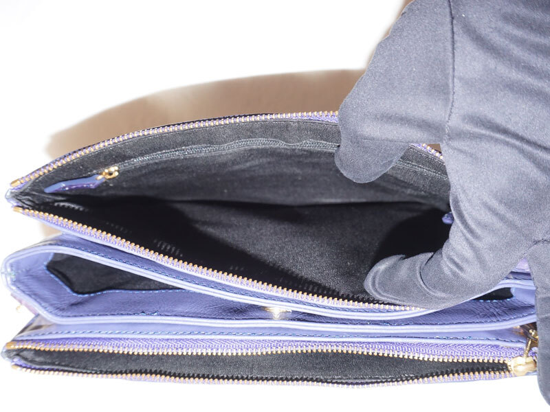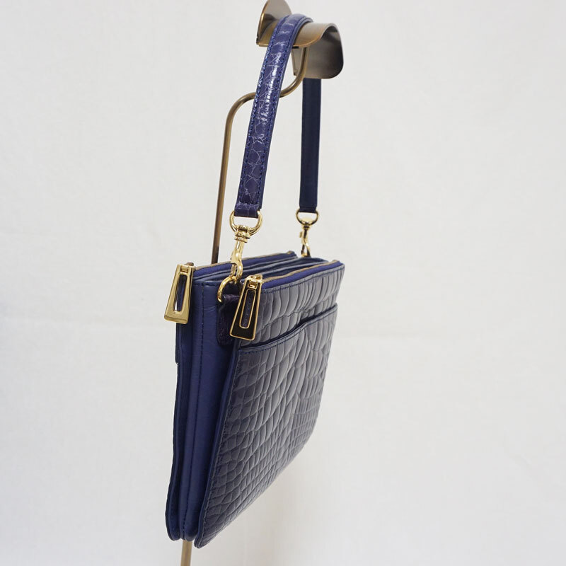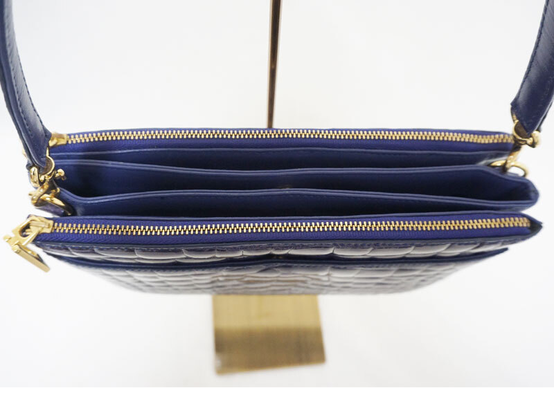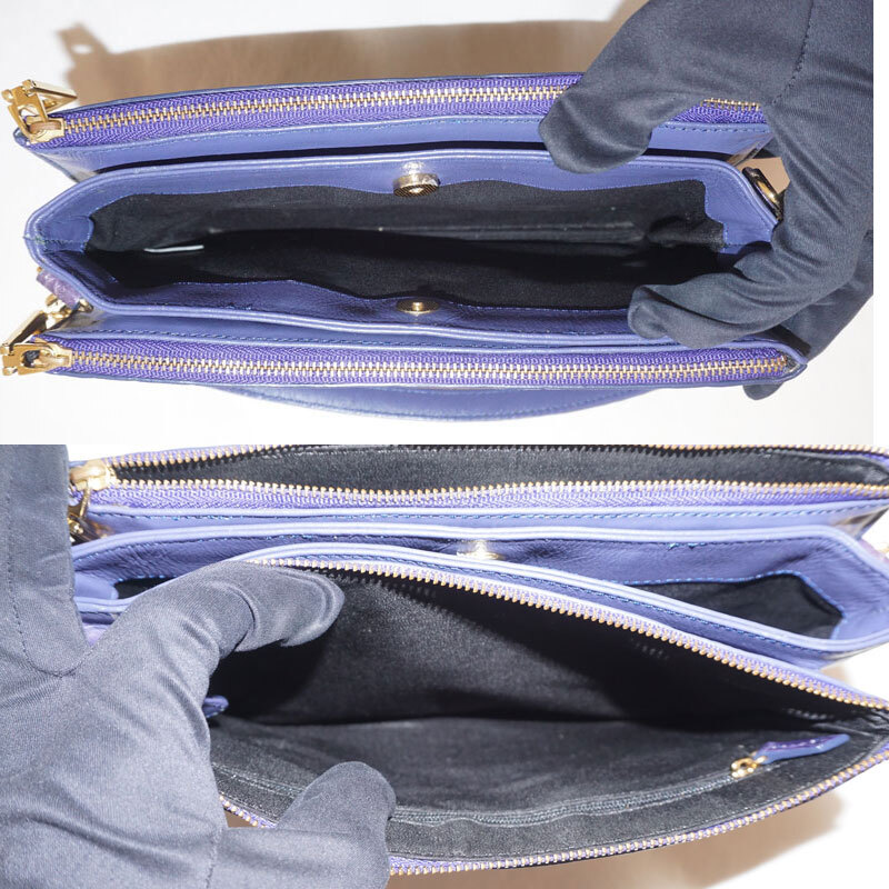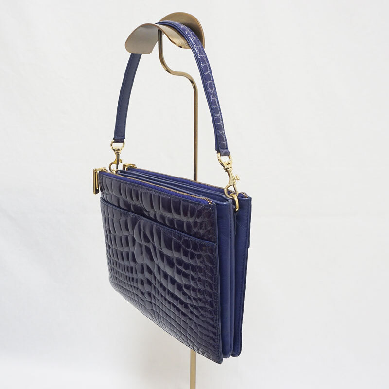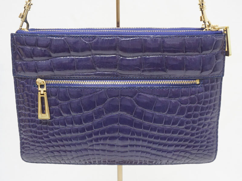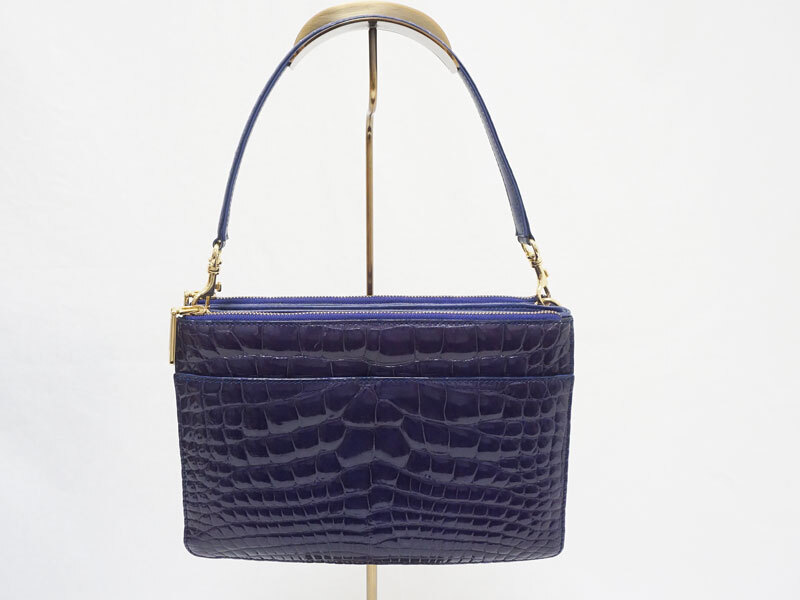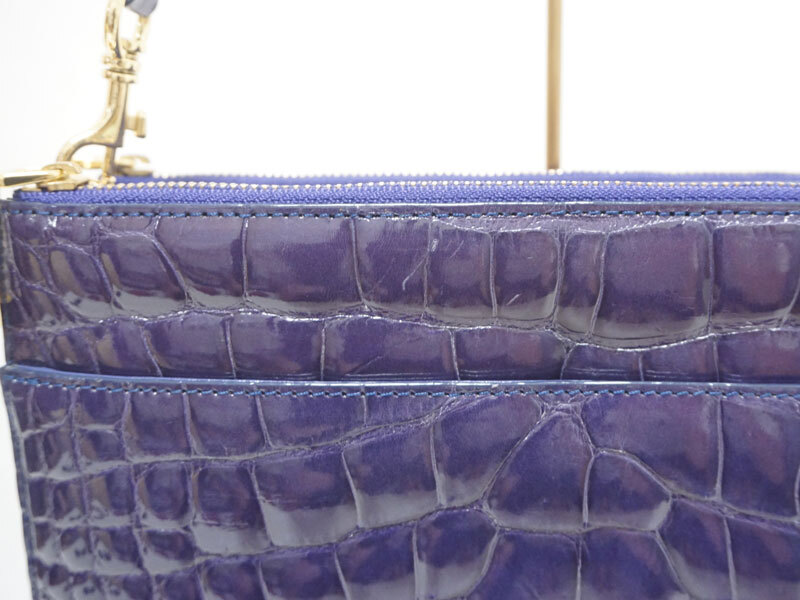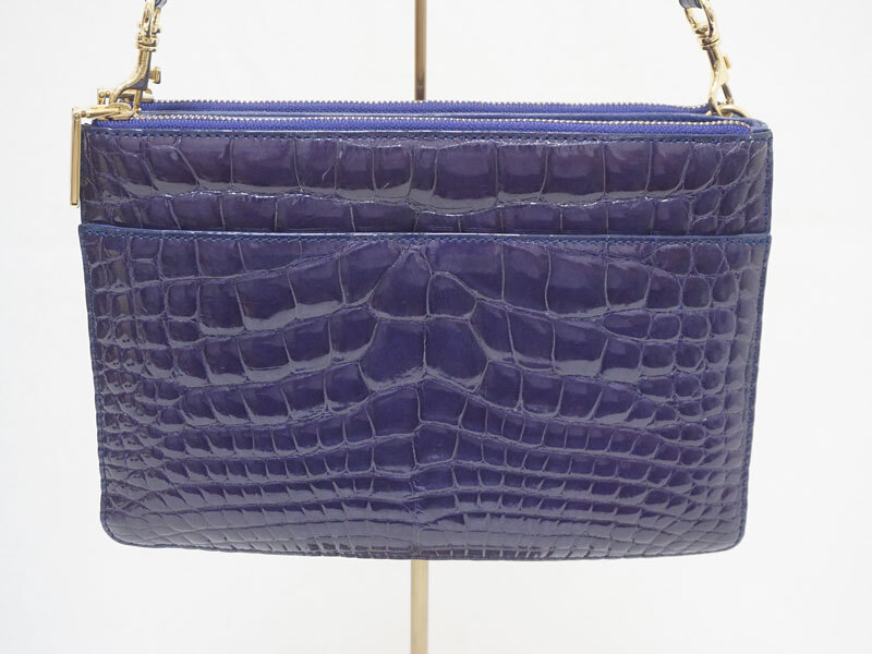 クロコダイル 2WAY ショルダーバッグ シャイニー パープル 紫 ゴールド金具 ショルダーストラップ付 美品 送料無料!!