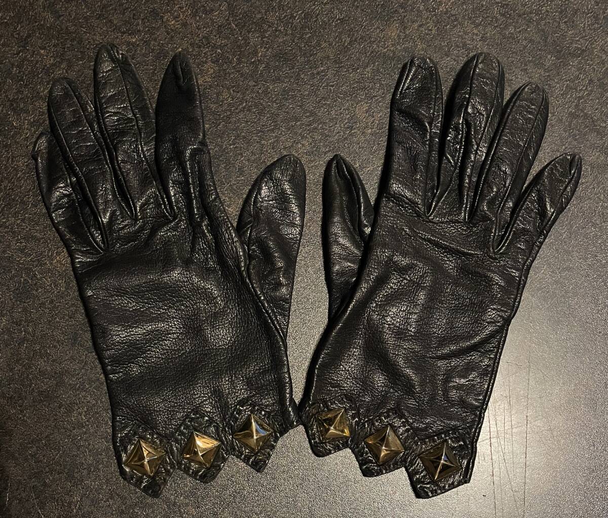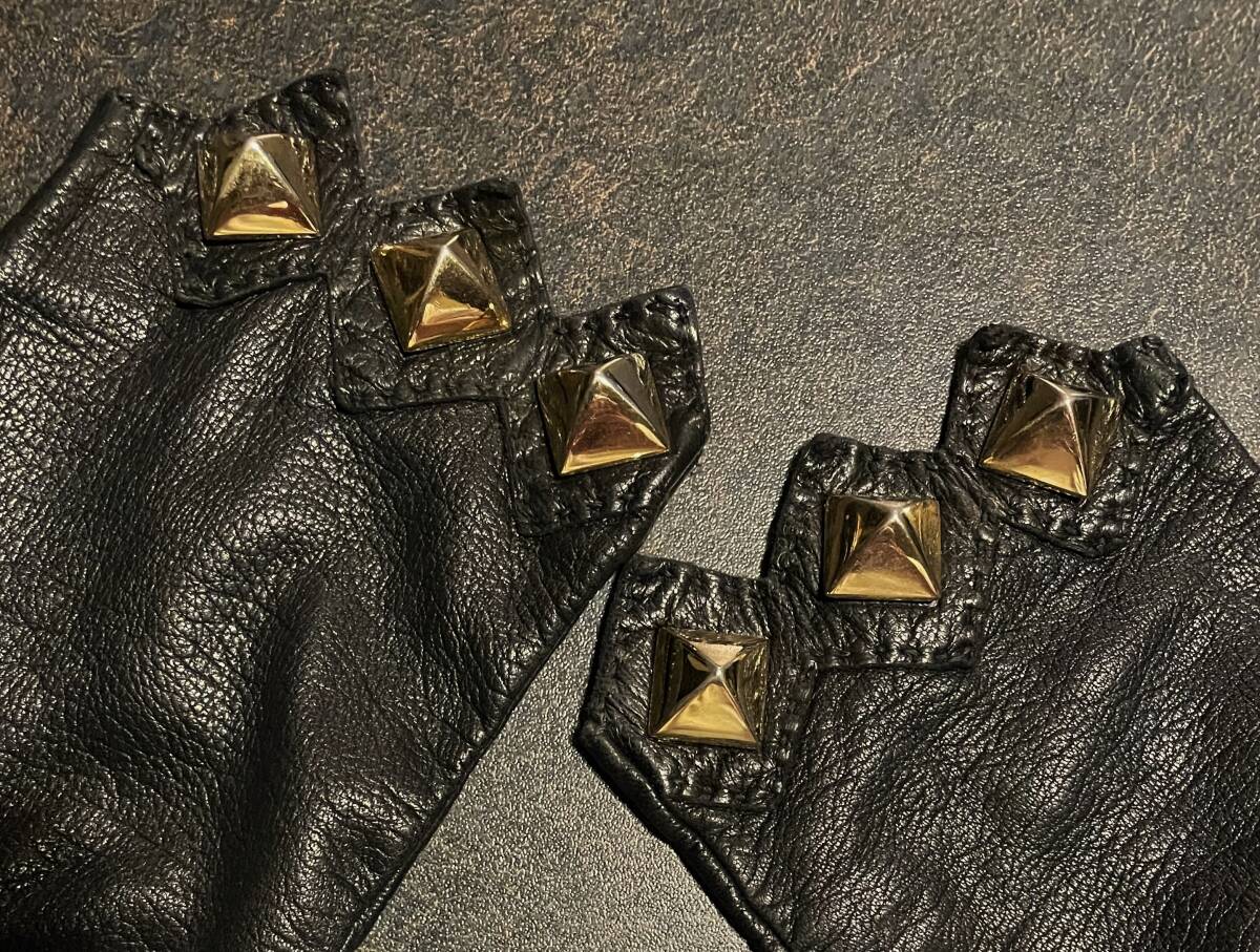 スタッズ希少デザインITALY製90s80sビンテージ黒レザー本革グローブ本皮ブラック手袋M羊革シープスキン?良質シボ革90年代80年代オールド鋲