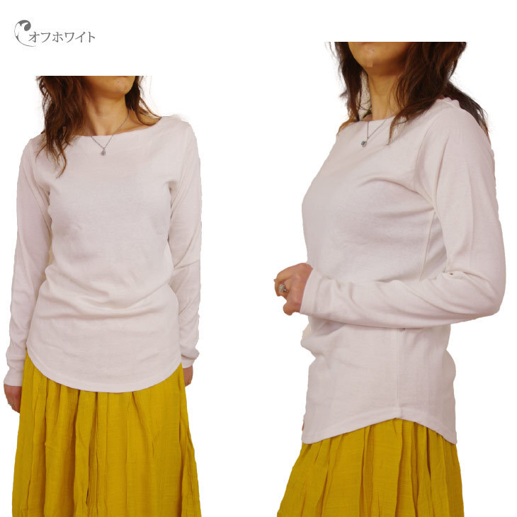 LL オフホワイト Tシャツ 長袖 レディース ボートネック レディース コットン 綿 ロンT カットソー 無地 新品