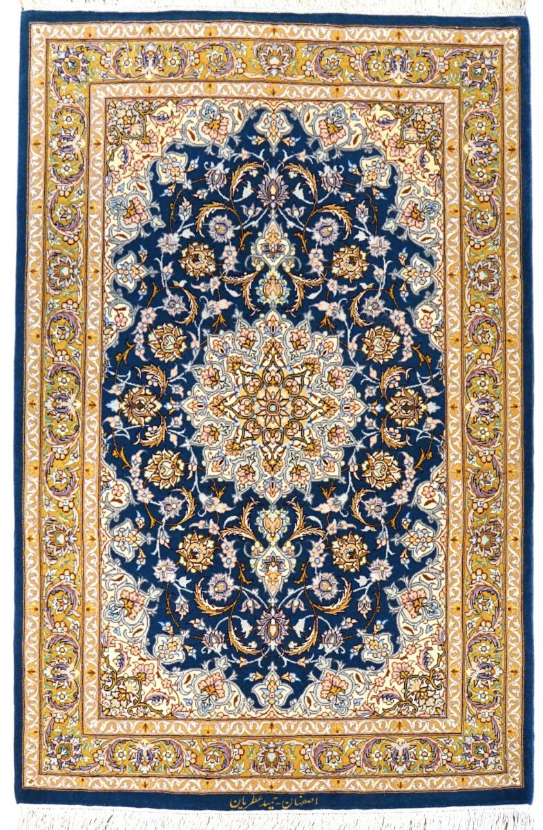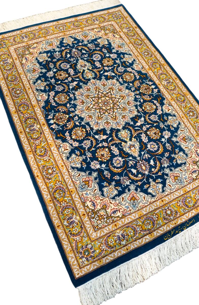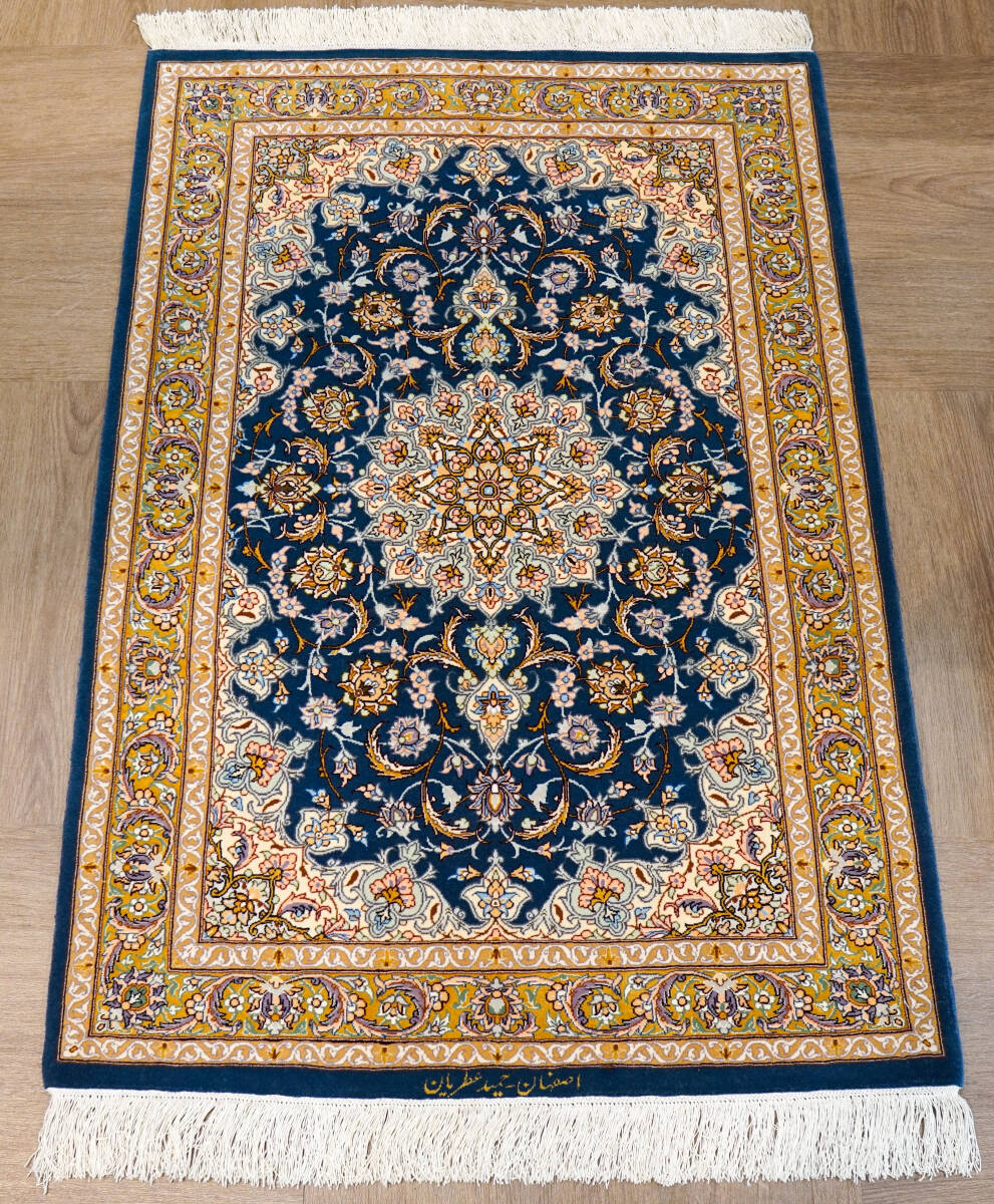 123×85cm ペルシャ手織り絨毯 イスファハン産 アツトリアン房 証明書付