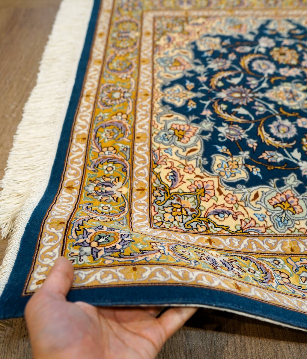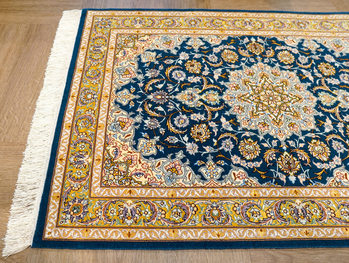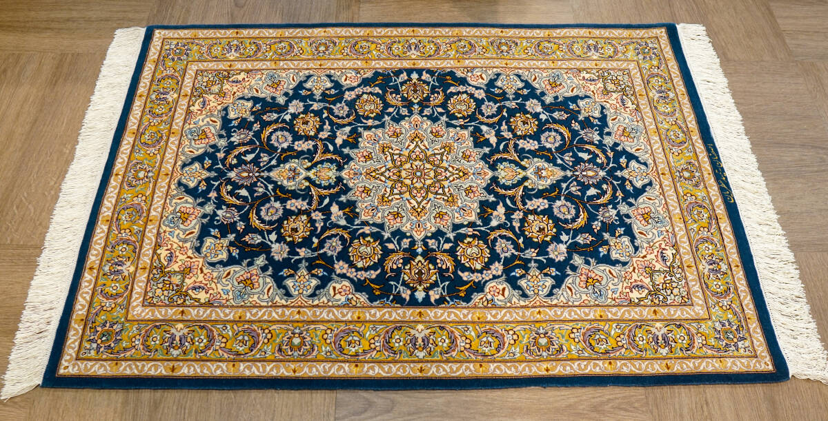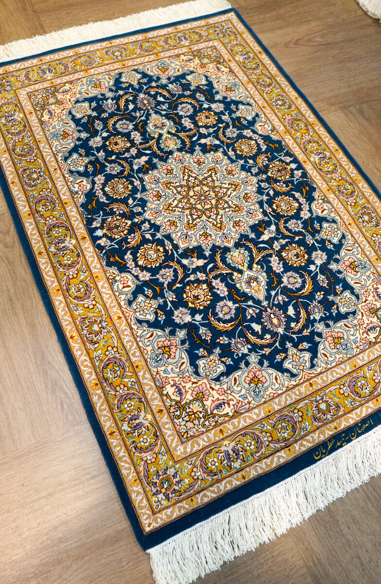 123×85cm ペルシャ手織り絨毯 イスファハン産 アツトリアン房 証明書付