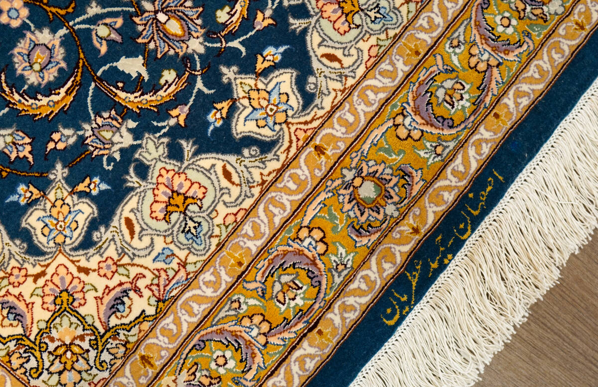 ペルシャ イスファハン産の草木染め総手織りの絨毯。