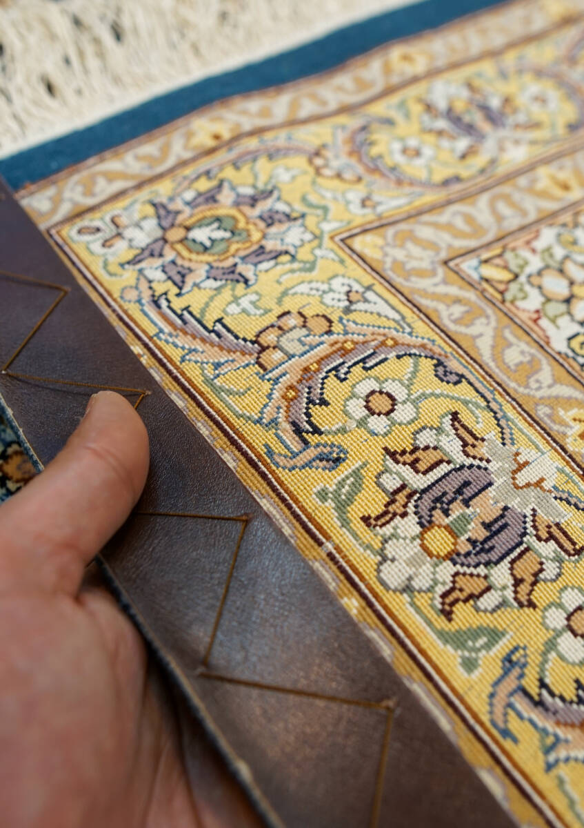 コールクウールという生まれて1年以内の子羊から刈り取った貴重なウールとシルクで織り上げた大変柔らかい絨毯です。
