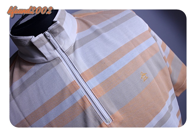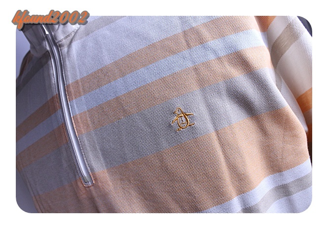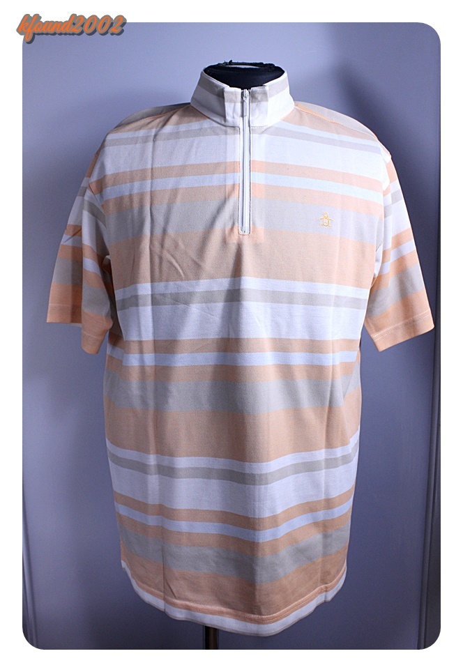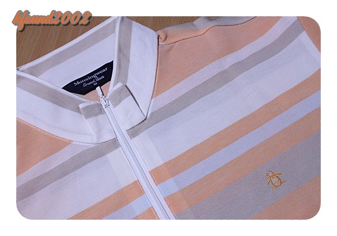 マンシングのシャツです。サイズはMとなります。薄いオレンジ系のストライプ柄です。