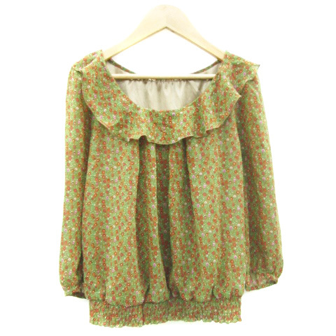 ロペピクニック ROPE Picnic ブラウス カットソー 七分袖 ラウンドネック 花柄 マルチカラー 38 ブラウン 茶 /YM37 レディース