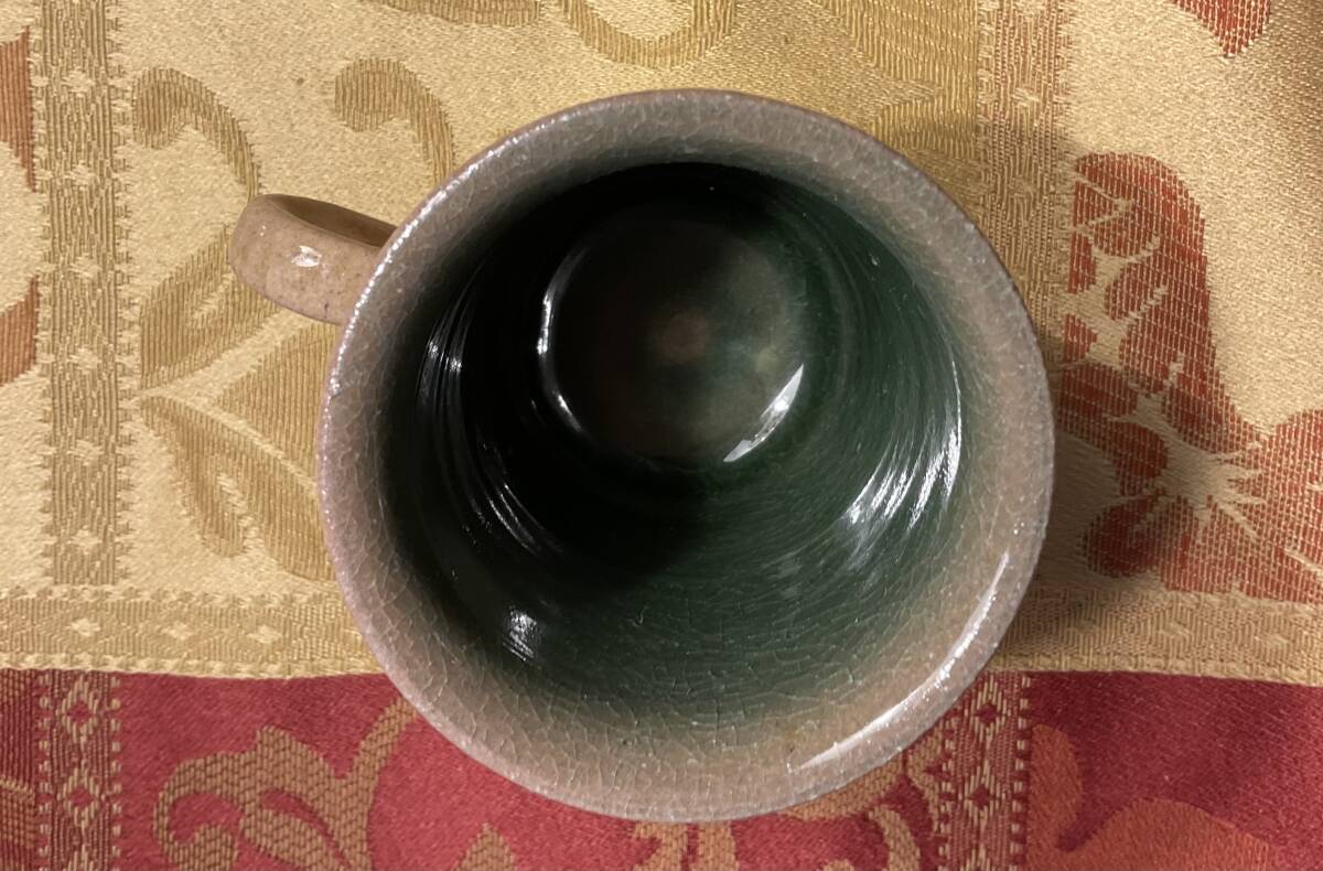 カップの中に片方はグリーン、片方は透明な釉薬がかけられており、
