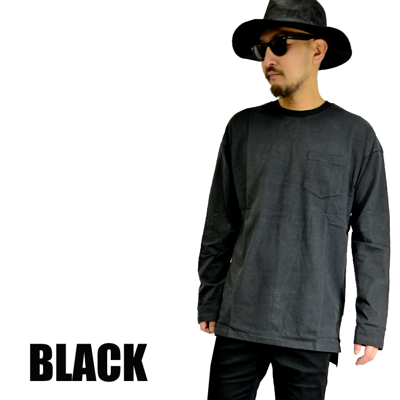 ビッグシルエット ポケット付き 天竺長袖Tシャツ 50662 ゆったりサイズ 新品 ブラック LL