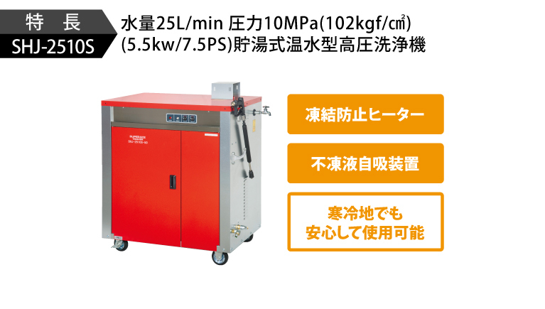 水量25L/min 圧力10MPa(102kgf/?)(5.5kw/7.5PS)貯湯式温水型高圧洗浄機