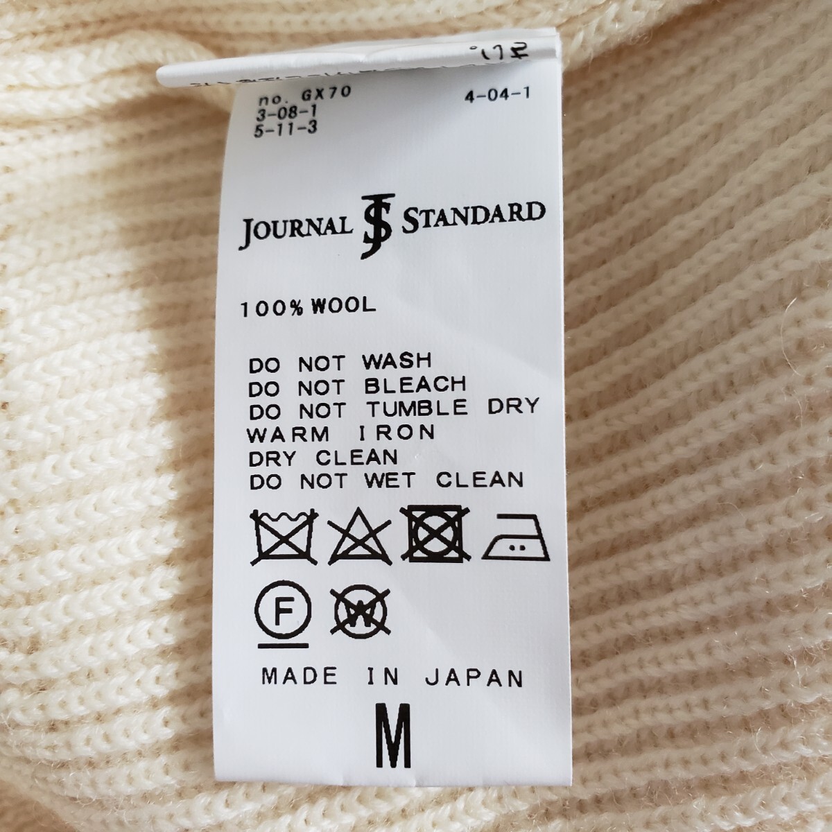 H7796dE 日本製 JOURNAL STANDARD FINE QUALITY KNIT ジャーナルスタンダード ニット オフホワイト メンズ サイズM セーター 無地