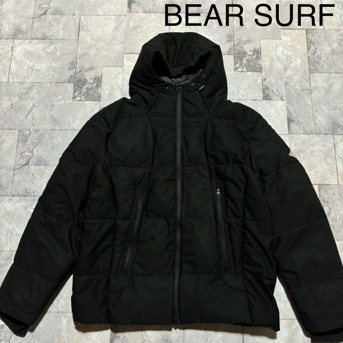 BEAR SURF ベアーサーフ Down Jacket ダウンジャケット ジップアップ フード 刺繍ロゴ ブラック サイズXL 玉FS1335