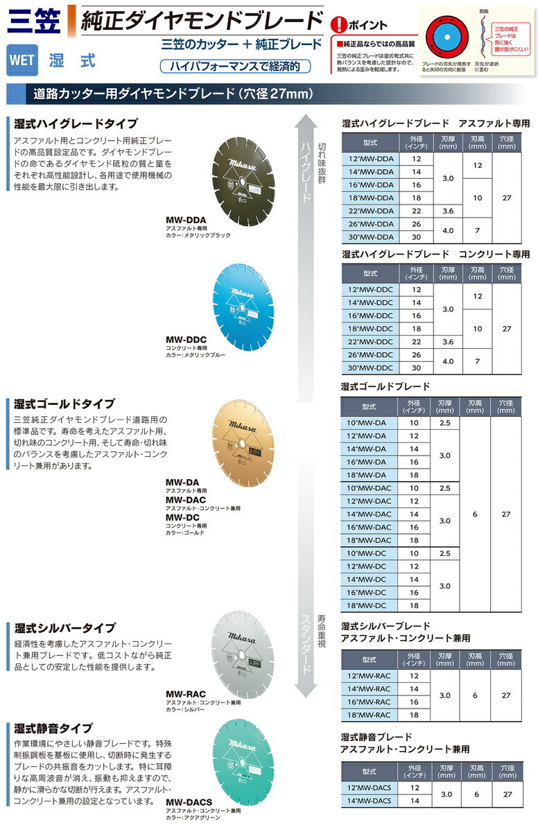 mikasa/三笠 純正ダイヤモンドブレード(穴径27mm)湿式ハイグレードブレード アスファルト専用 12"MW-DDA