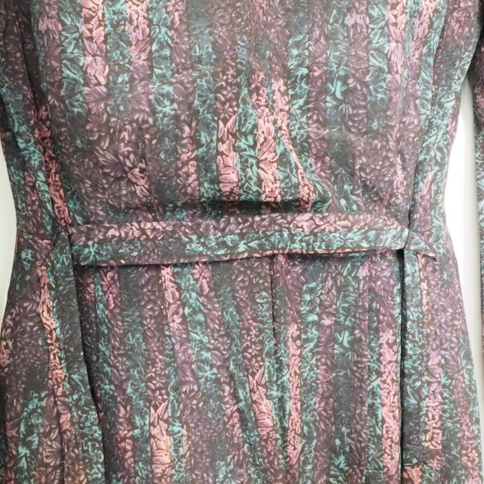 昭和40〜50年代のビンテージドレス ハンドメイド レディース長袖ワンピース 前ボタン 貝ボタン 綿素材 古着 ANS604
