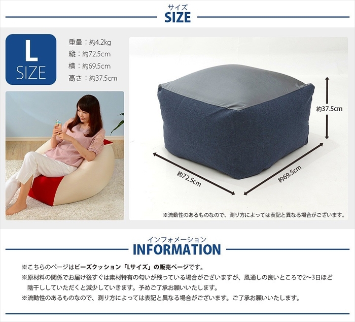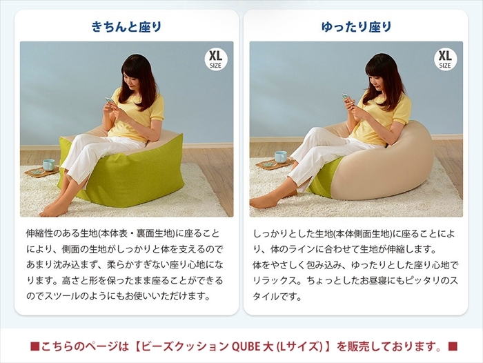 | ※【同シリーズ】のリンクは当店のヤフオク店のページへ進みます。 ● 「QUBE」ビーズクッション M ● 「QUBE」ビーズクッション L ● 「QUBE」ビーズクッション XL ● 「QUBE」ビーズクッション L 専用カバー ※このページは[「QUBE」ビーズクッション L]を販売しております。 |