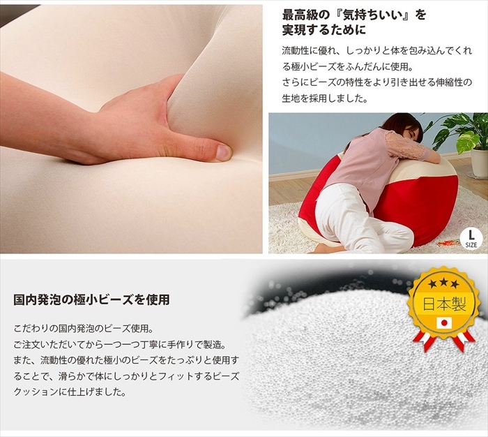 | 極小ビーズを使用した日本製のビーズクッション。 カバーリングタイプで洗濯ができます。 |