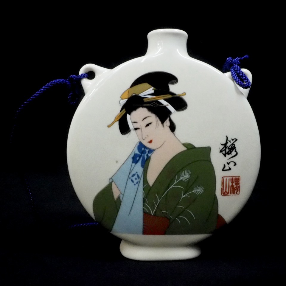 思わず見入ってしまうほど美しい!ビンテージ 梶田陶器株式会社 日本酒陶器製容器2個セット 元箱付 浮世絵 櫻山 美人画 1990年代 ① SKA604