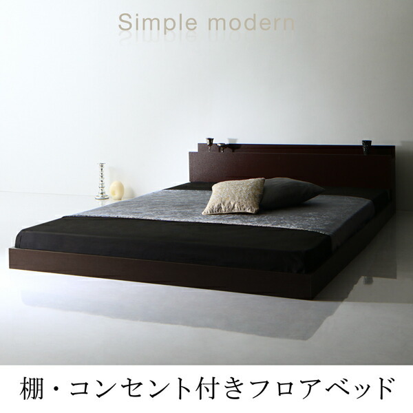 棚・コンセント付きフロアベッド ベッドフレームのみ ダブル