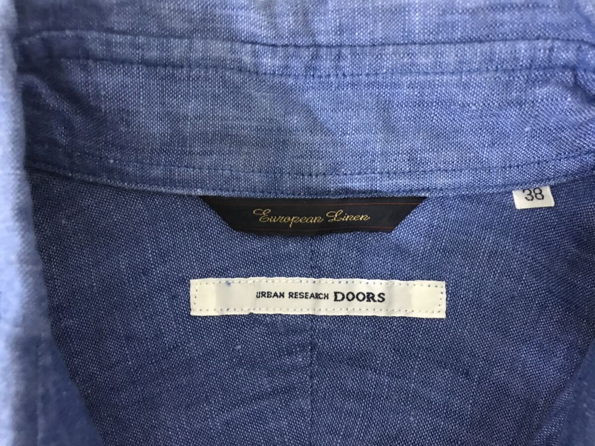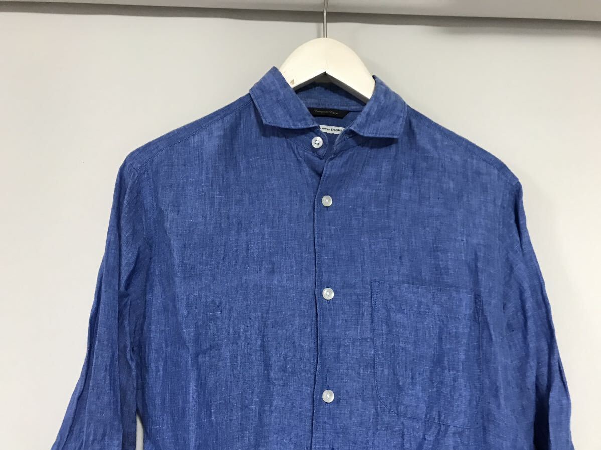 商品名:本物アーバンリサーチドアーズURBANRESEARCHDOORSリネン麻7部丈長袖シャツメンズサーフミリタリーアメカジビジネススーツゴルフ青ブルー38M