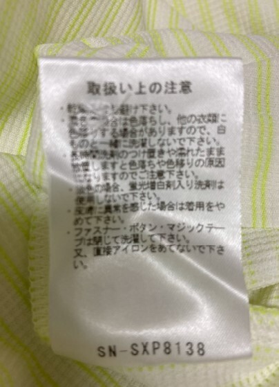 | ●商品説明● | 試着のみの為目立った汚れなどはありません。 ■商品特徴■ サイズ M 色 明るいグリーンストライプ 身丈 : 約 70cm 身幅 : 約 53cm 肩幅 : 約 44cm ※素人の平置き採寸です 素材 : ポリエステル85% ナイロン15% ※落札金額は消費税込の値段です。 -------------------------------------------------- 【落札後について】 落札後ヤフーからの落札通知にお取引に関しての詳細を記載しております。 氏名・商品の送付先・連絡先・時間の指定等の必要事項を記入の上「落札者」から「取引ナビ」よりご連絡お願いします。 -------------------------------------------------- ご質問などあればわかる範囲でお答えします。 |
