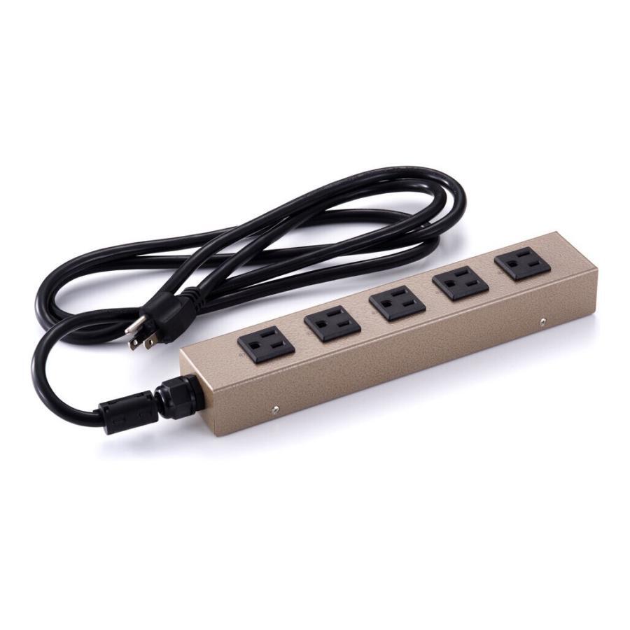 電子部品から発生するノイズは、年々高周波数化しており、1GHzを超える周波数帯のノイズが発生しています。このノイズは、音質の劣化の原因となります。今回発売する電源タップは、主に1GHz以上の電磁波を広帯域に吸収する効果のあるEMIサプレッサーシートを筐体内部に搭載することで、飛び交う電磁波を吸収し、音質への悪影響を防ぐ設計になっています。振動対策は、1.2mm厚の鋼板製フレームを採用し、底板裏面には衝撃吸収スポンジを採用しています。フレームは高剛性により振動を抑制し、スポンジは振動が発生した場合にそれを吸収することで、トータルに振動を抑制します。カラーは環境に溶け込みやすい落ち着いたゴールド色を採用し、傷の目立ちにくいハンマートーンで仕上げました。