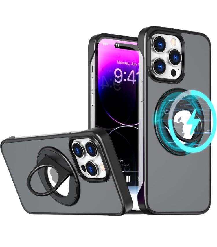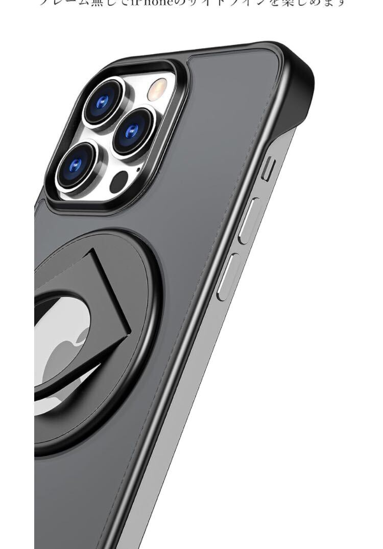 iPhone 15 Pro Max ケース 360度回転 リング付き MagSafe対応 指紋防止 フレームなし アップルホール 付き iPhone15Pro Max (黒)/S69