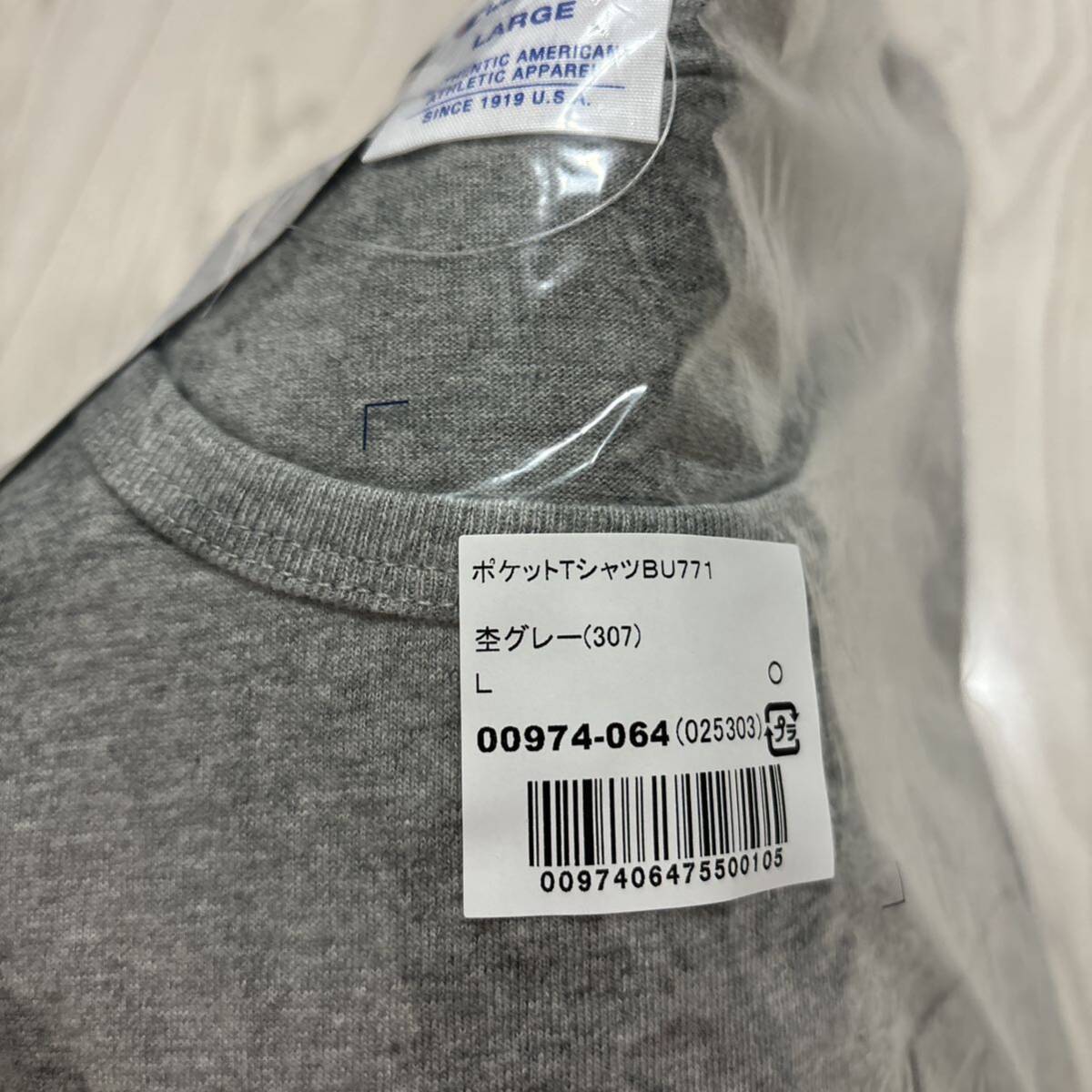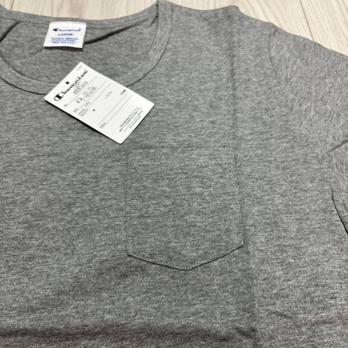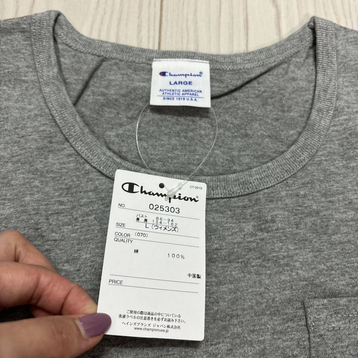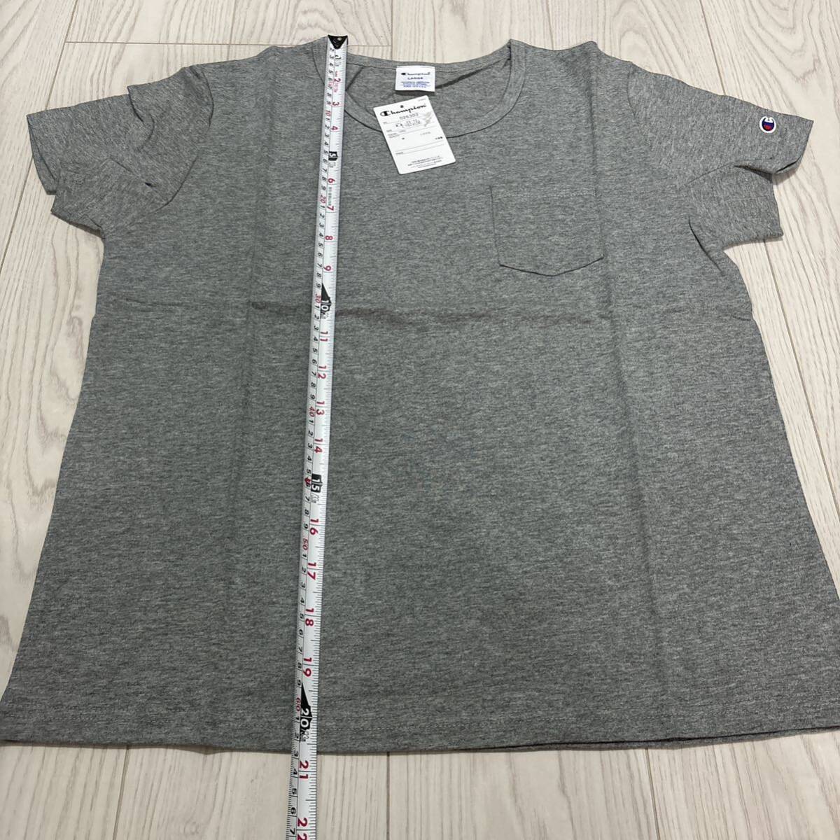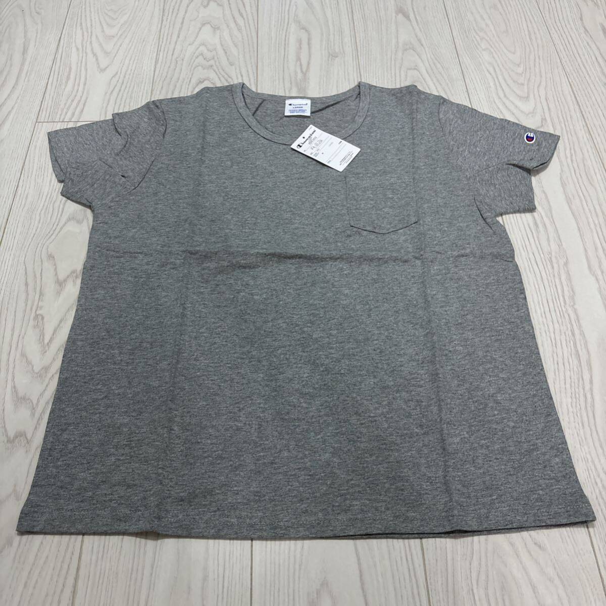 未使用●Lサイズ Champion チャンピオン ポケット Tシャツ/杢 グレー/半袖/トップス/ウィメンズ/レディース/ブランド/ロゴ/綿100%★1275-4