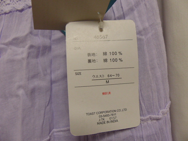 タグ付き未使用 インド綿ロングスカート Mサイズ パープル