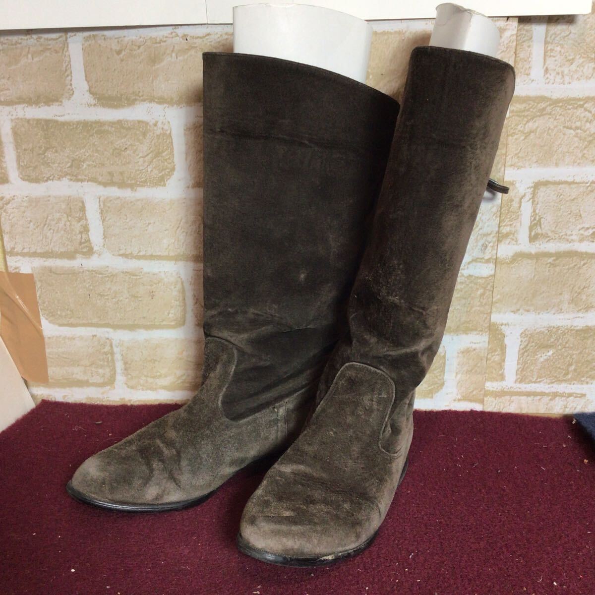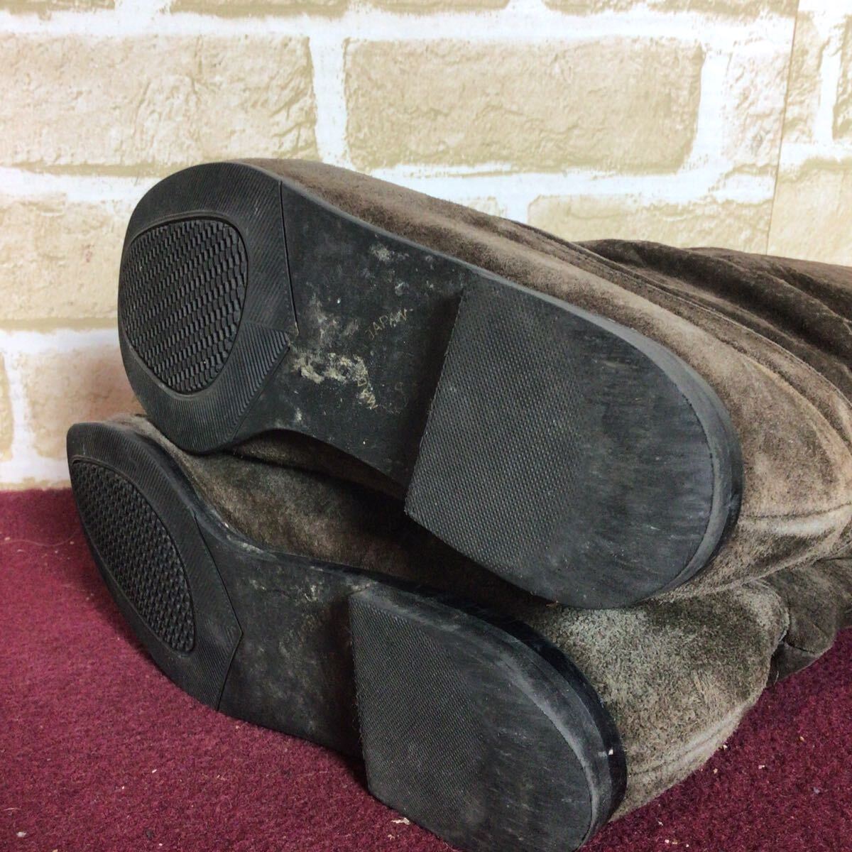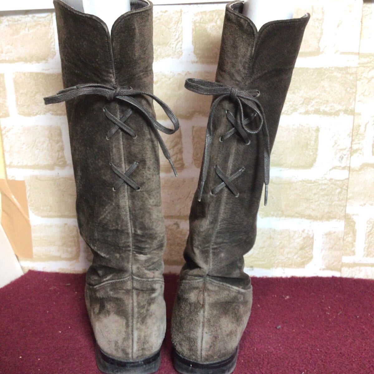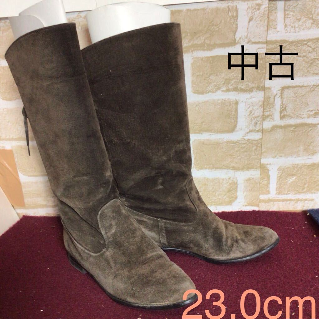 【売り切り!送料無料!】A-375 ロングブーツ!カーキ!ブラウン!23.0cm!日本製!スエード!中古!