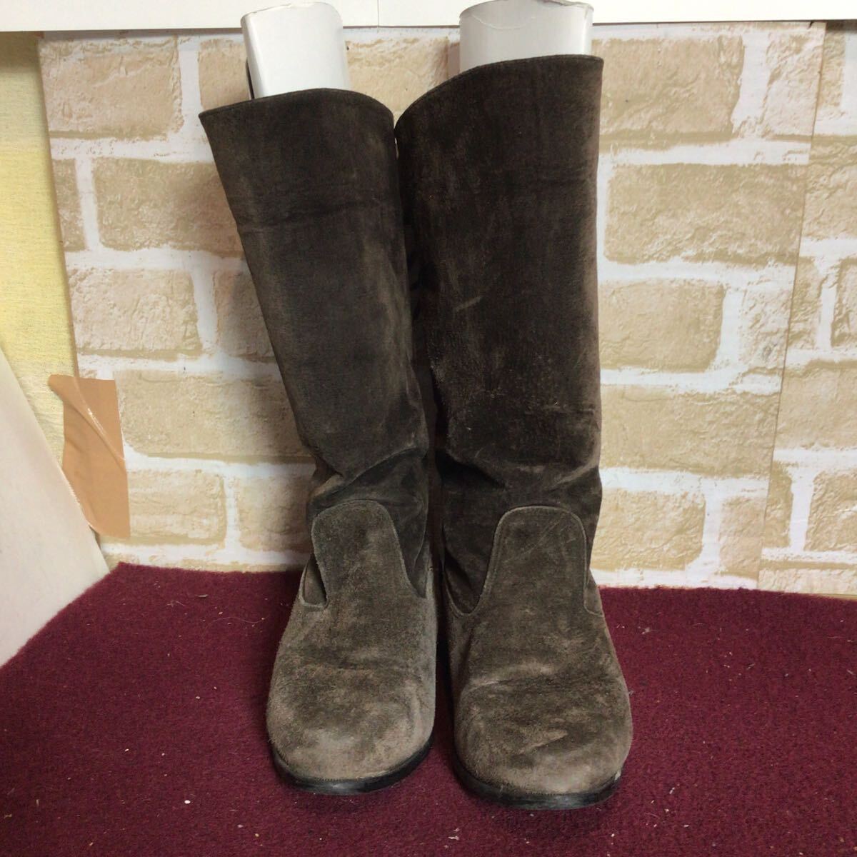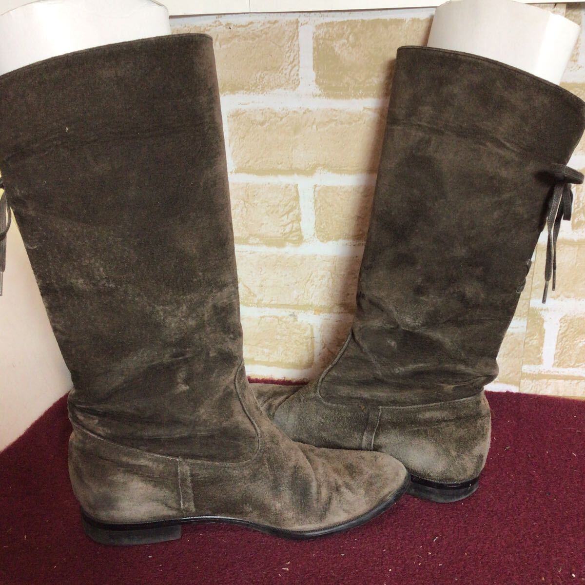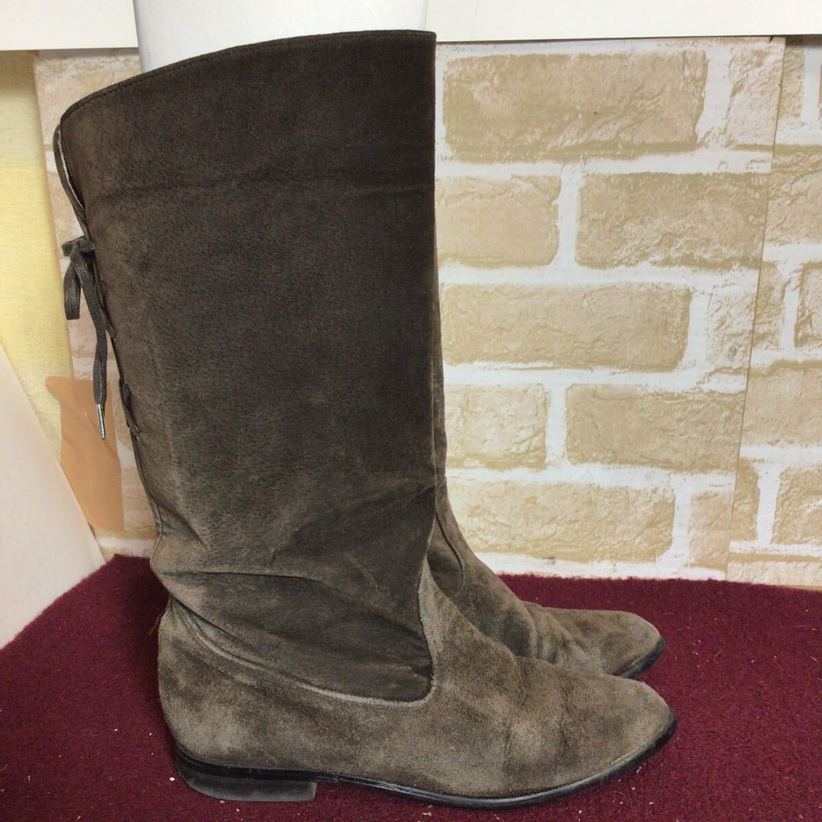 【売り切り!送料無料!】A-375 ロングブーツ!カーキ!ブラウン!23.0cm!日本製!スエード!中古!