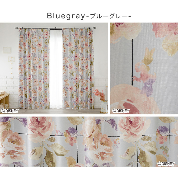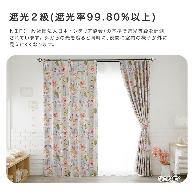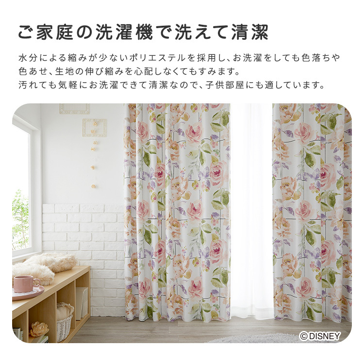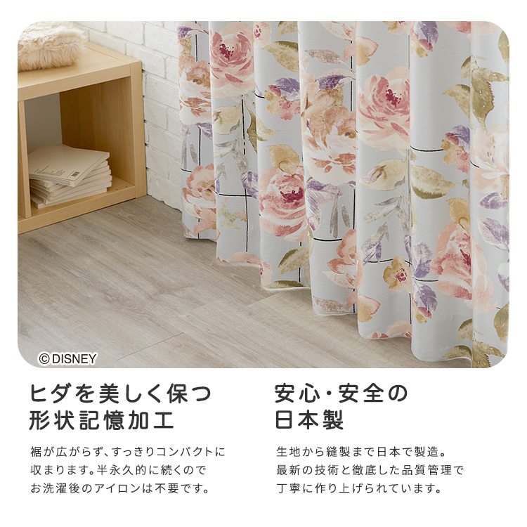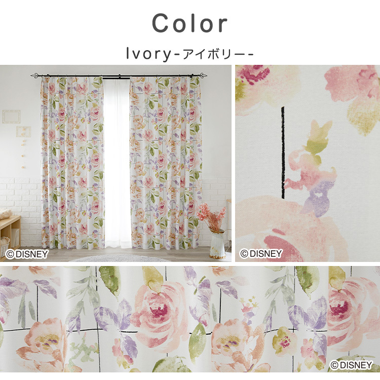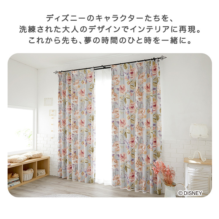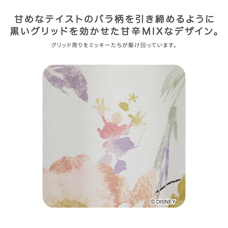 DISNEY/ディズニー ドレープカーテン 100×178cm×1枚 MICKEY/Rose grid ミッキー/ローズグリッド アイボリー