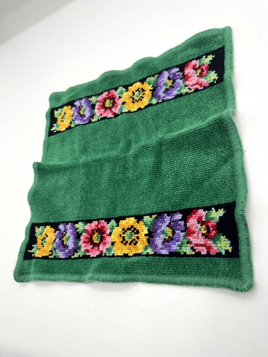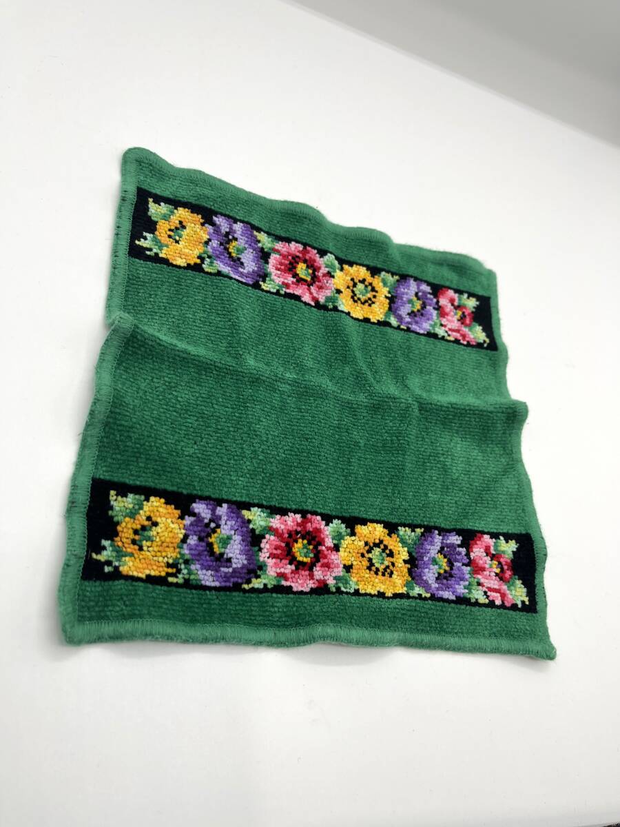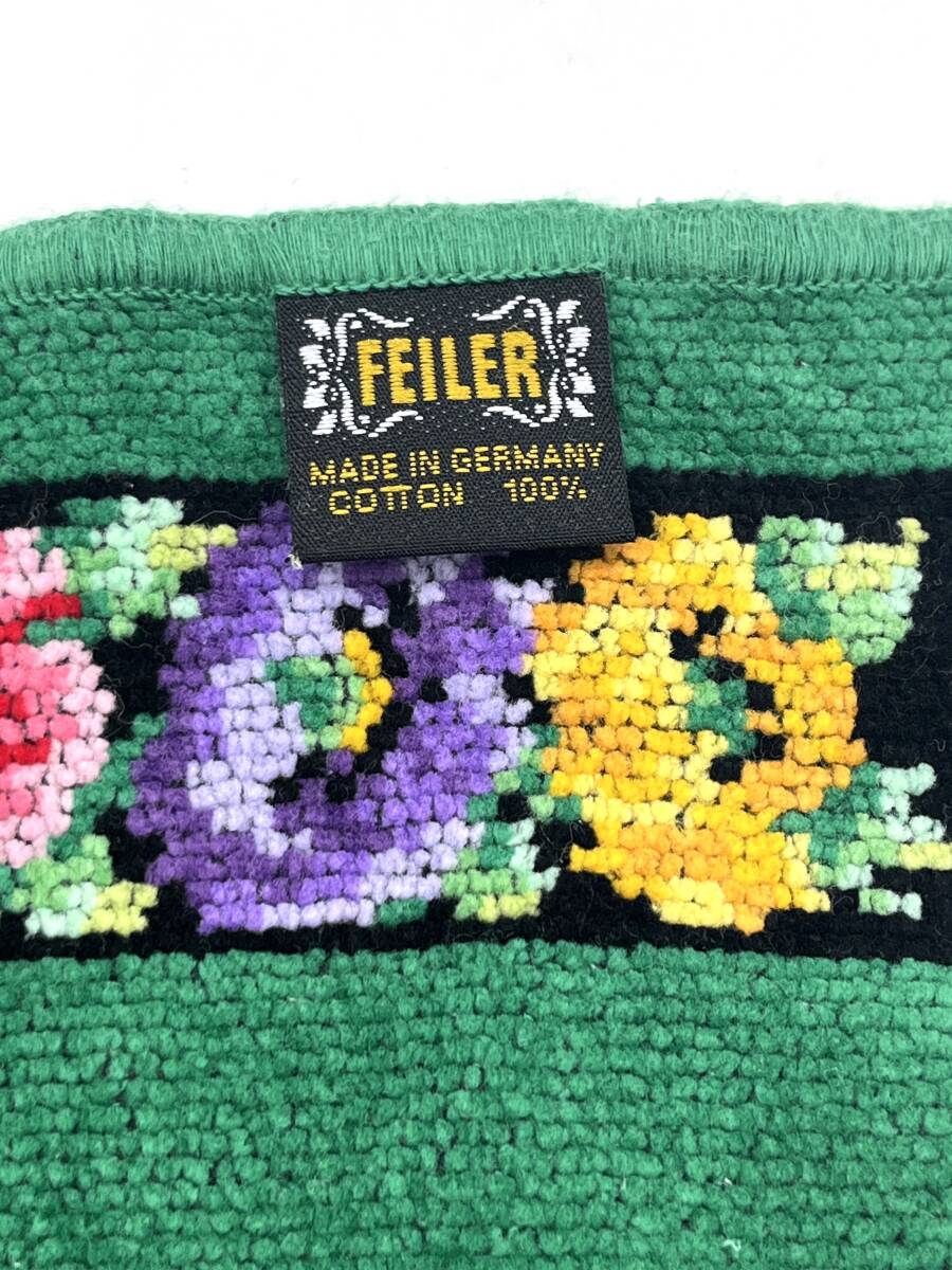 FEILER フェイラー ハンドタオル ハンカチ グリーン×ブラック 花柄 フラワー W24 H24