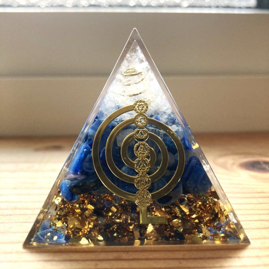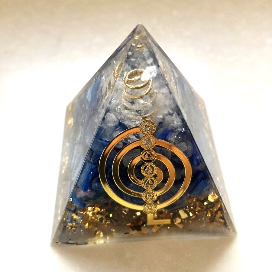 【商品名】GA002 オルゴナイト ピラミッド型 白水晶 カイヤナイト 置物 インテリア 浄化