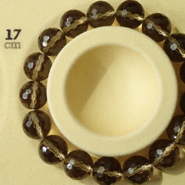 【スモーキークォーツ】 約12mm(±0.数mm) 17粒 42.6g カットクォーツ ブレスレット SMK576 男女兼用 ユニセックス パワーストーン 天然石