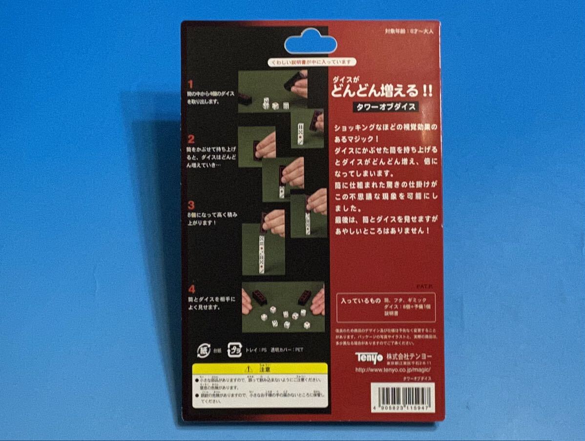 マジック商品を製造販売しているテンヨーのタワーオブダイスです。新品未使用です。ノークレーム・ノーリターンにてお願いいたします。