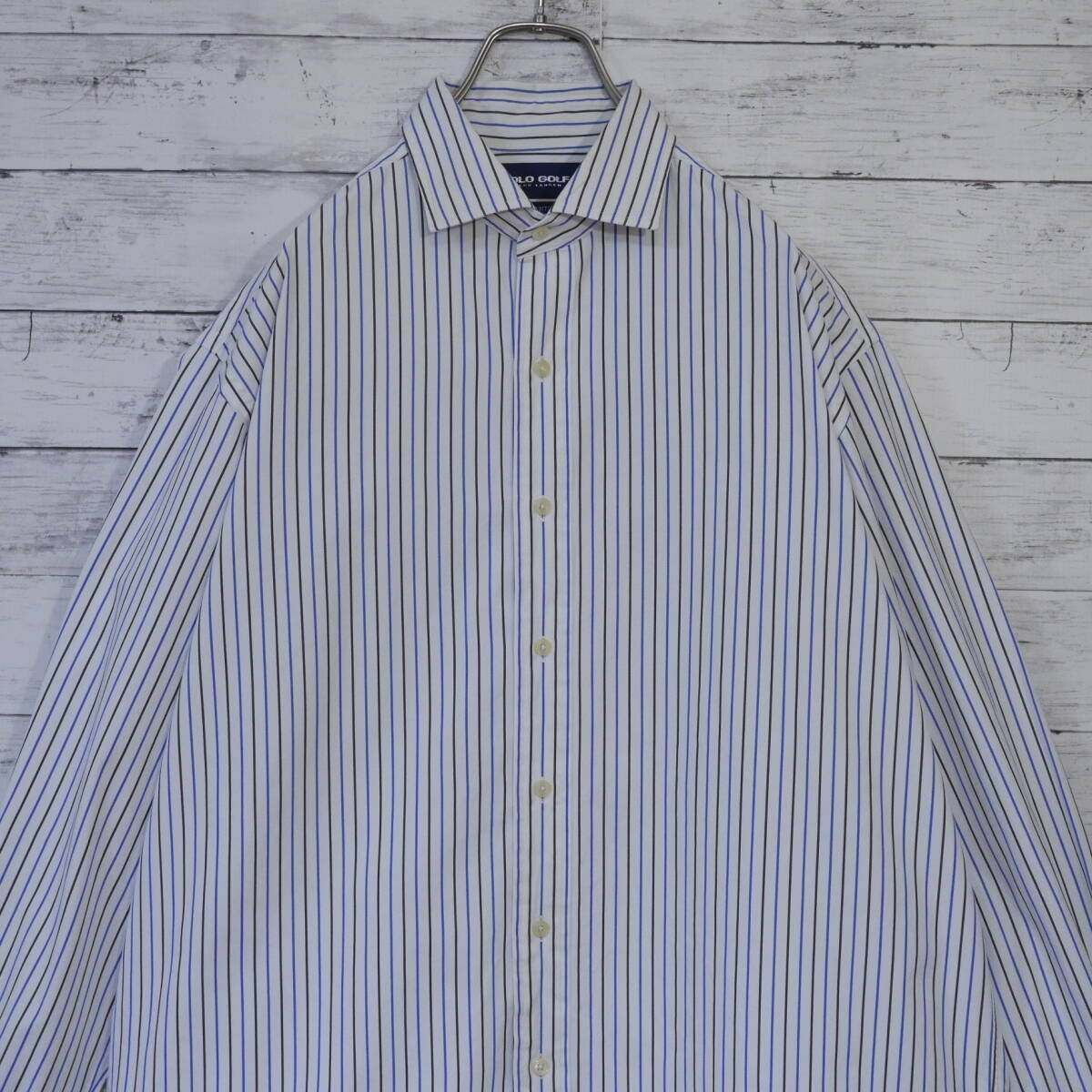 POLO GOLF ポロゴルフ Polo Ralph Lauren ポロラルフローレン マルチストライプ 長袖シャツ L ホワイト ブラック ブルー 白 黒 青 20202631