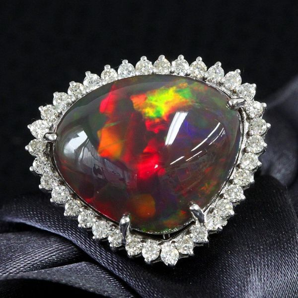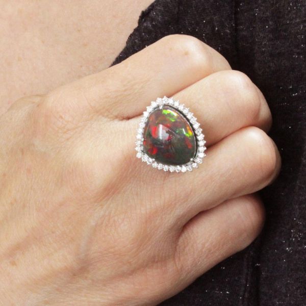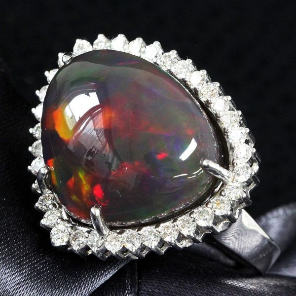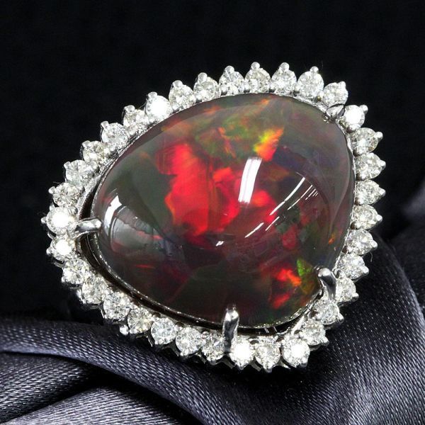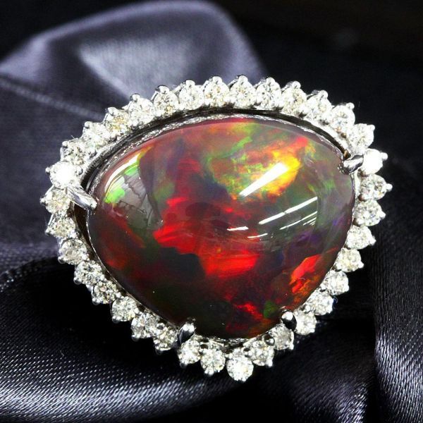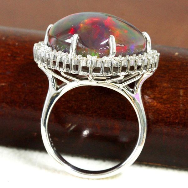 超大粒16.4ct全面に、ドラマティックで美しい遊色が見られ、美しいカボションカットが鮮やかな色彩を魅せる、高価値のポイントをすべて抑えた美しいリングです!