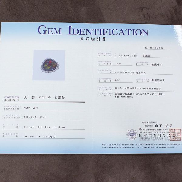 【製造大卸☆最安値】オーロラフラッシュ!16ct 天然 ブラックオパール 天然 ダイヤモンド 18金 K18 WG リング 指輪【鑑別書付】