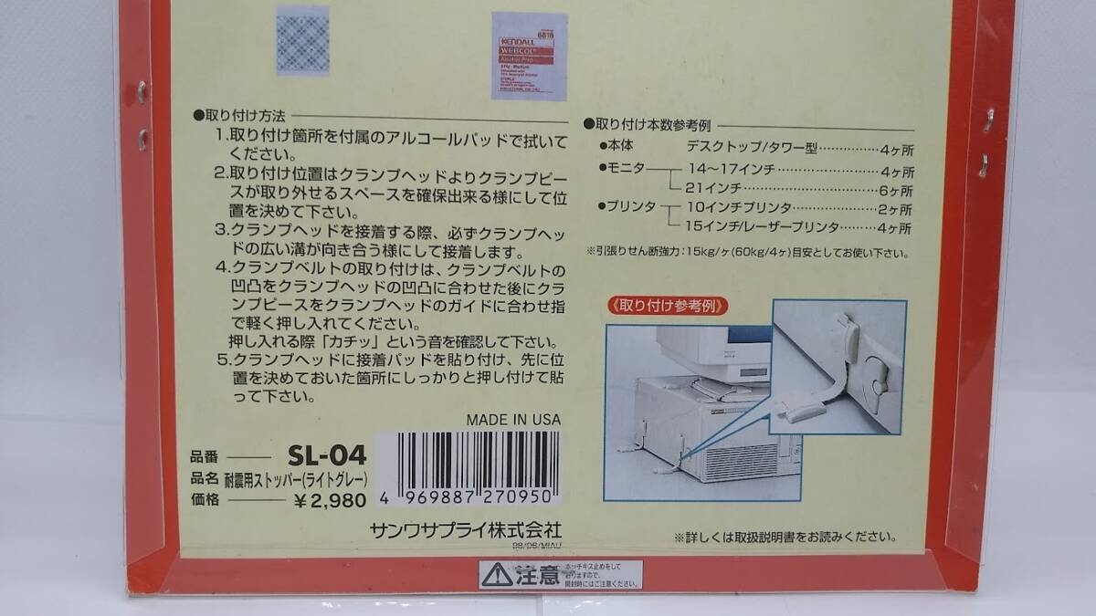 ご覧いただき誠にありがとうございます。 ●サンワサプライ OA機器用耐震ストッパー(4本入り) SL-04 3点 写真に写っているものが全てです。他の付属品はありません。 新品ですが、細かな傷や汚れがあります。保管品につきご容赦ください。 当方、専門外で詳しくありません。 使用方法、設定方法などのサポートは出来かねますのでご了承願います。 ※画像で判断できる方のご入札をお待ちしております。 | ||