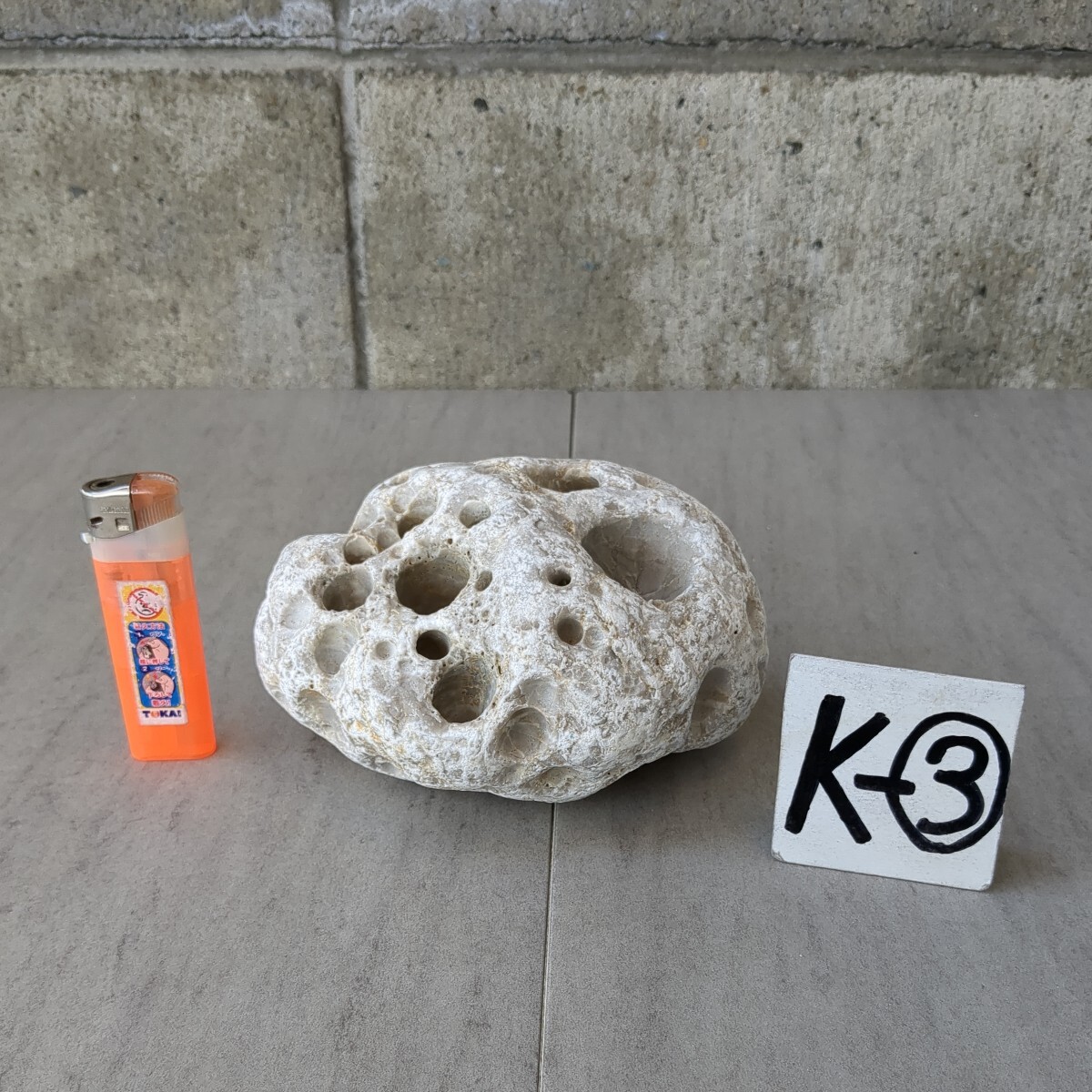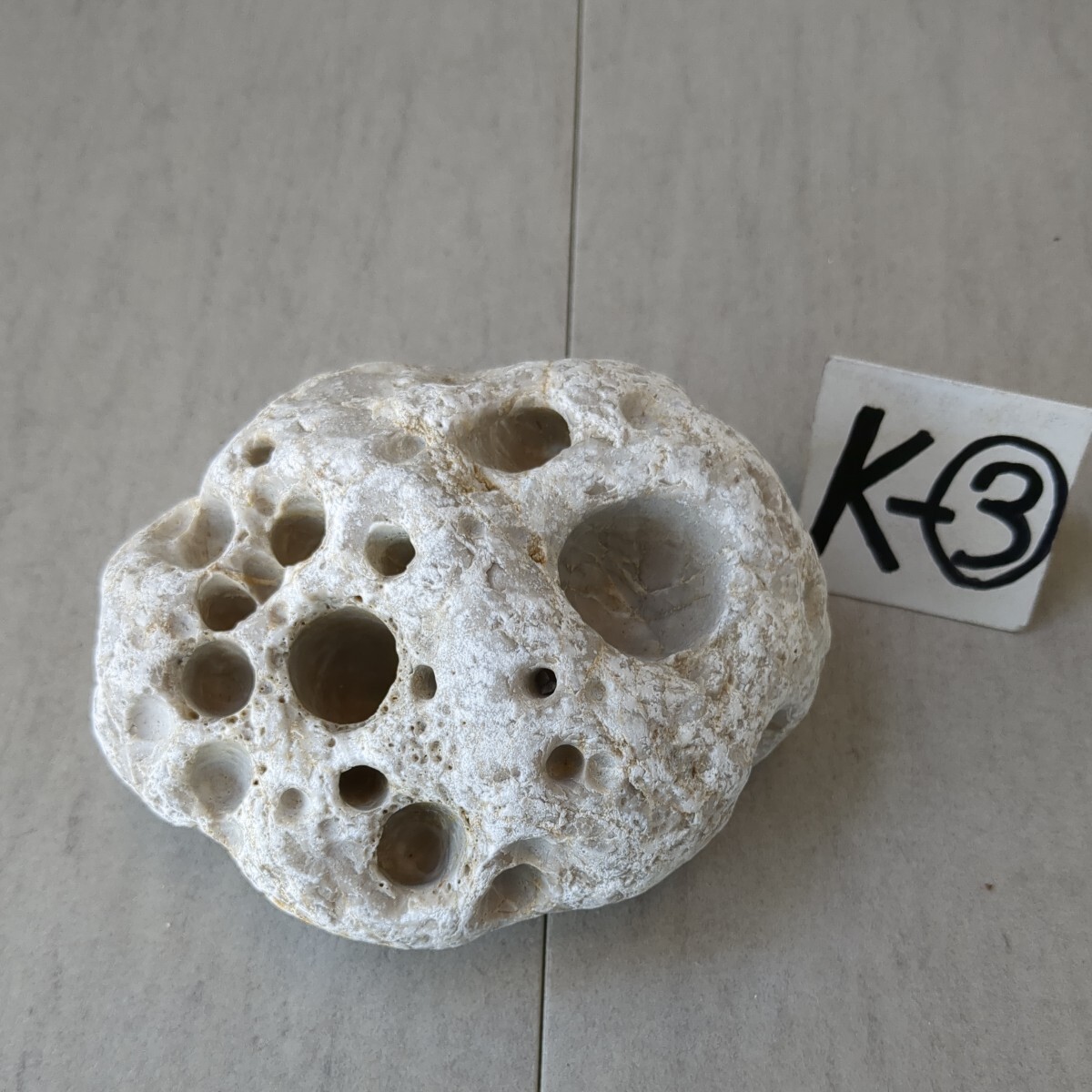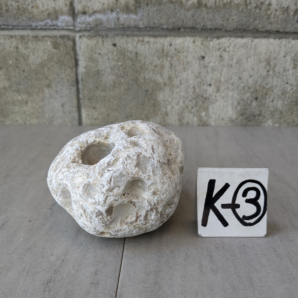 穴開き石 (白)  14cm×11cm×8cm 1,69㎏ K-③   水石 盆石 観賞石 アクアテラリウム