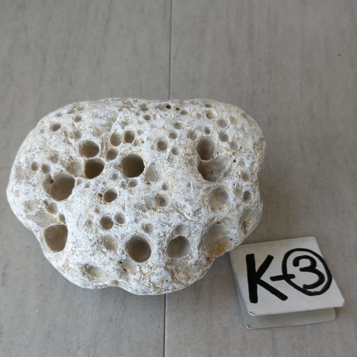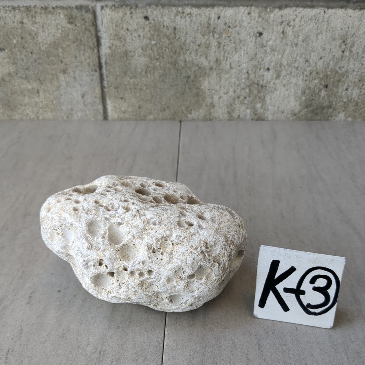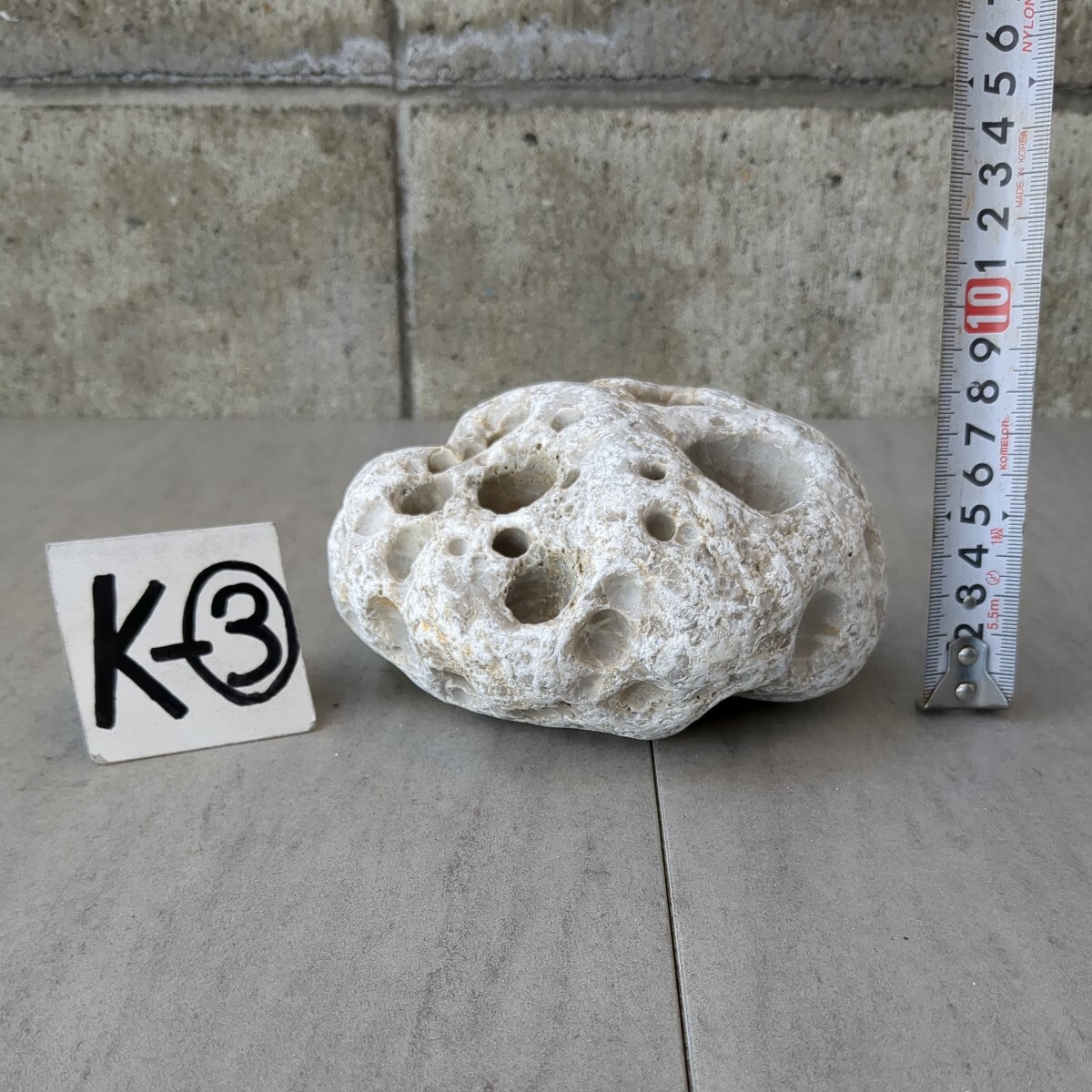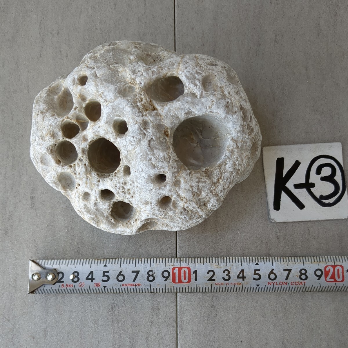 穴開き石  (白)   4cm × 11cm × 8cm       1,69kg       K-③