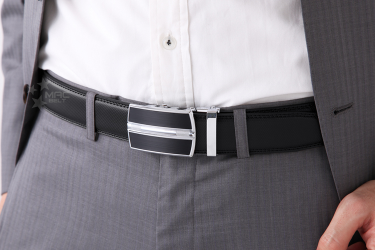 サイズ調整はいつでもワンタッチで自由自在。快適レザーベルトです。