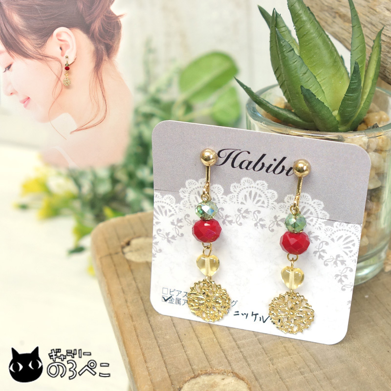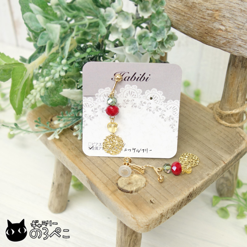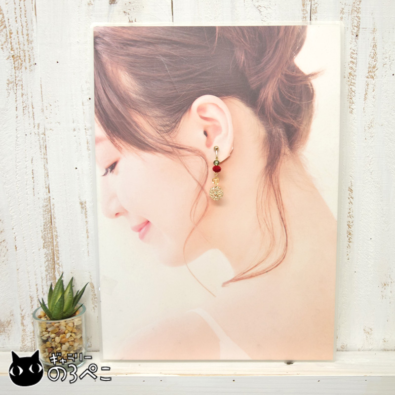 イヤリングは金属アレルギー対応パーツ(ニッケルフリー)です。(金属アレルギーには個人差がありますので、全ての方にアレルギー反応が出ないことを保証するものではありません。大丈夫かどうかはご自身の責任でご判断ください。)