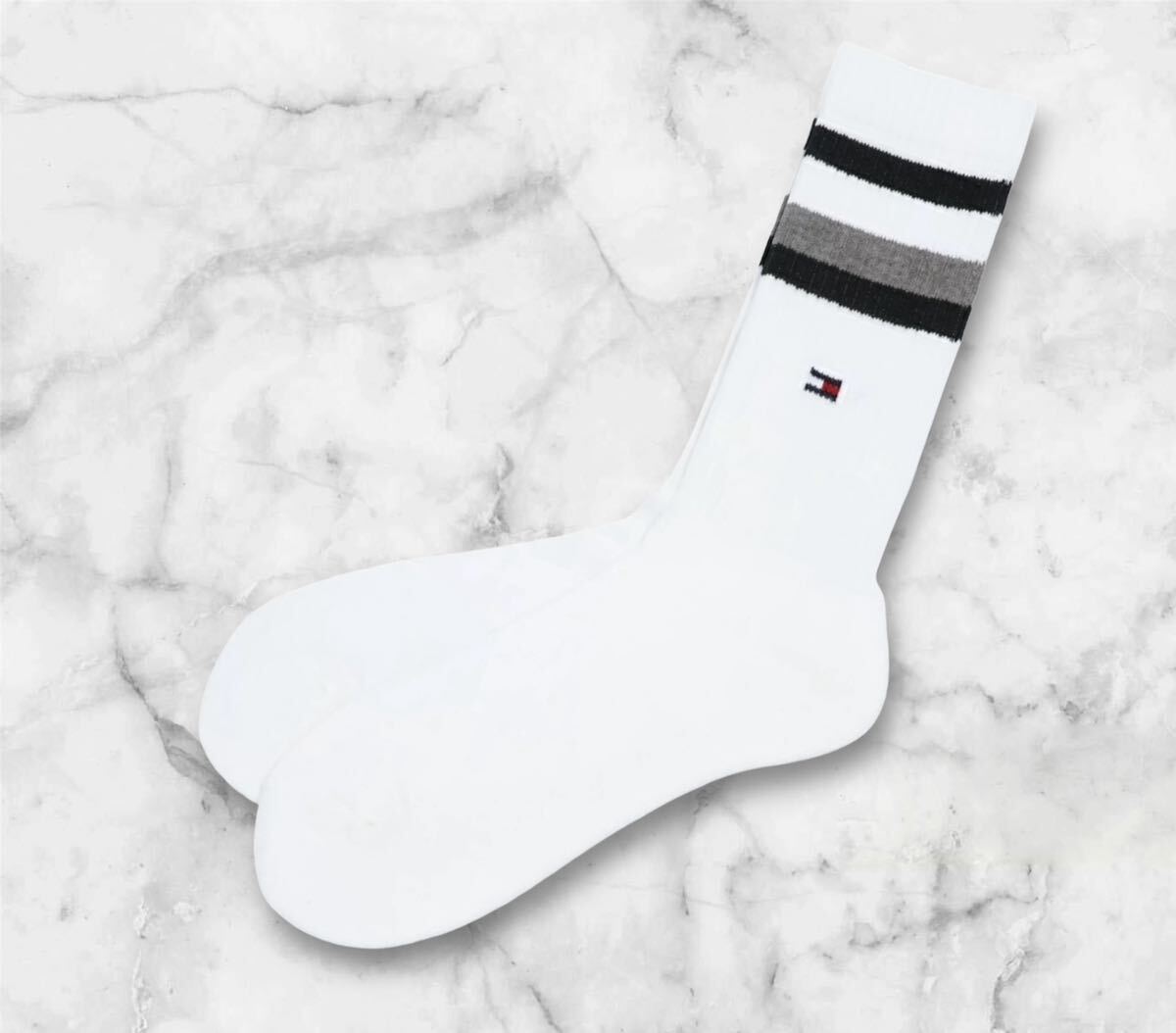 TOMMY HILFIGERのロゴやラインデザインを施したソックス。柔らかくフィット感があるので、履きやすいアイテムです。どうしても消耗品になってしまうソックスは、何足あっても困らないのも魅力◎