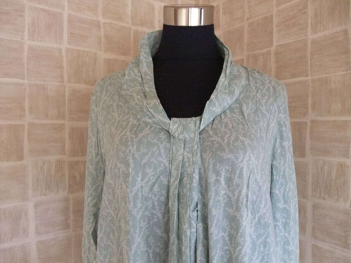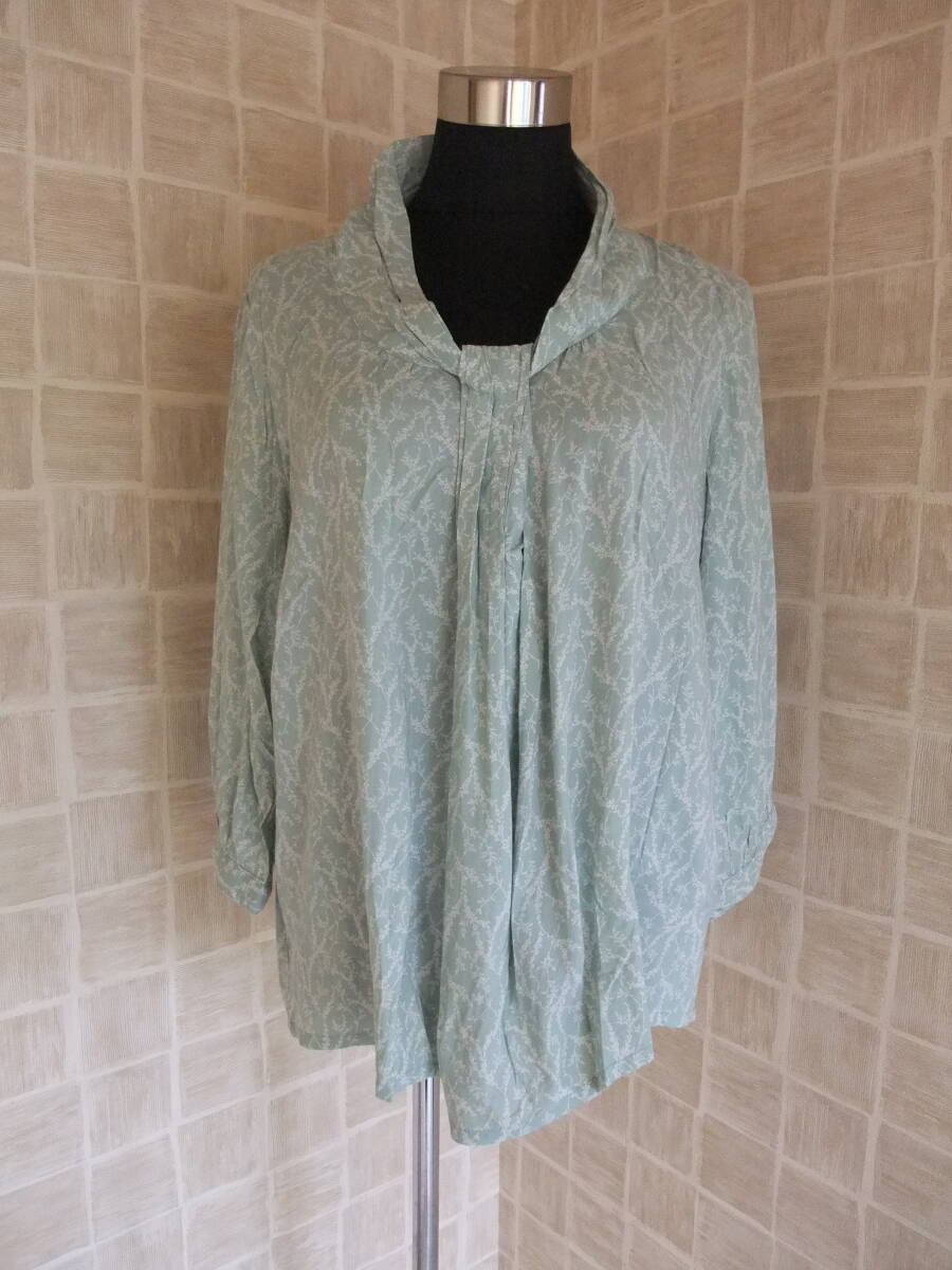 【表示サイズ】LL(バスト93-101) ■実寸サイズ■身幅50㎝・肩幅40㎝・袖丈41㎝・着丈59㎝ ■素材■綿50%・レーヨン50% ■お色■緑系 ■状態■数回着用したため一部シミがついています | |||