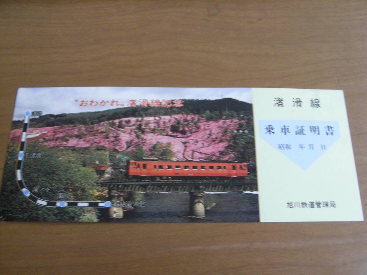 ”おわかれ”渚滑線記念 渚滑線 乗車証明書 旭川鉄道管理局長 国鉄 昭和61年